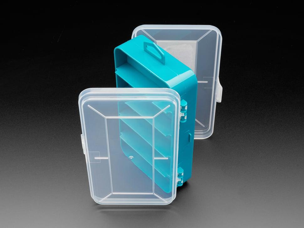 Deze hoogwaardige, stevige en duurzame onderdelendoos met vergrendeling zorgt voor veilige opslag van uw benodigdheden. Het compacte ontwerp, met buitenafmetingen van 159 mm x 89 mm (6,25" x 3,5") - 104 mm (4,1") inclusief scharnieren, maakt hem ideaal voor diverse doeleinden.