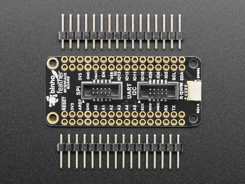 Dit board maakt een naadloze koppeling van uw Binho Nova hostadapter met elk apparaat met feather mogelijk. Het ondersteunt I²C-, SPI- en UART-interfaces volledig, wat zorgt voor veelzijdige connectiviteit voor een breed scala aan toepassingen.