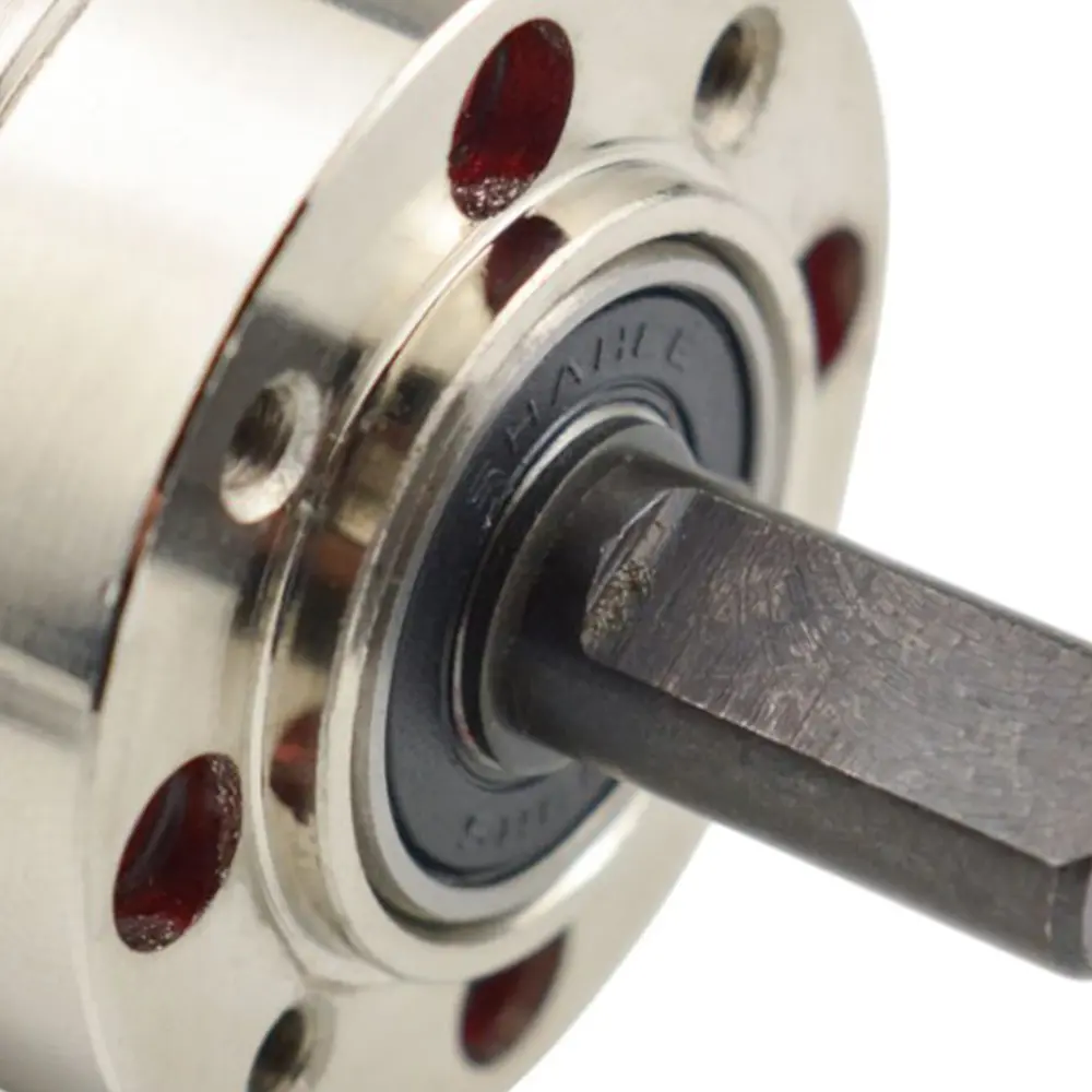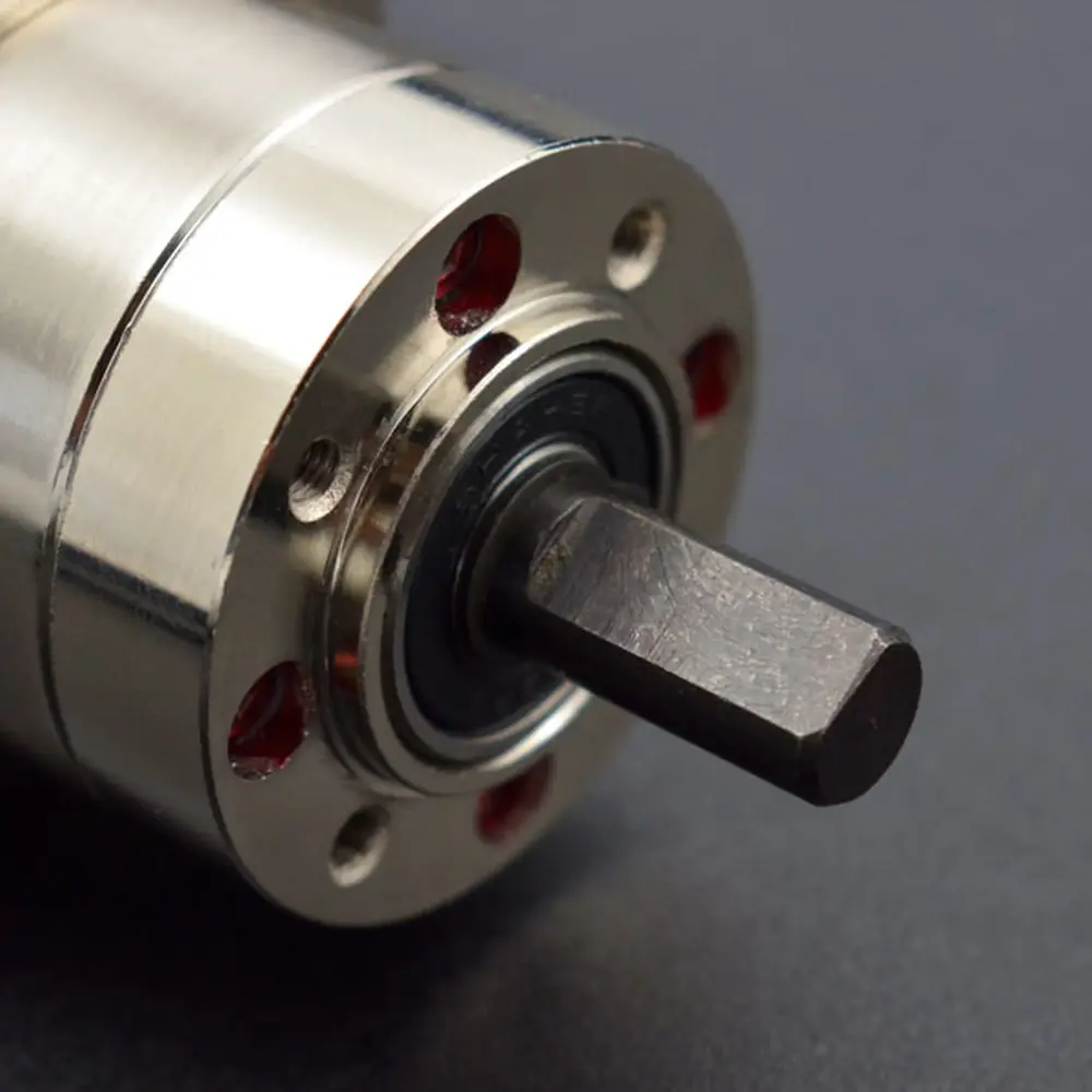 De motor heeft een compact ontwerp met een behuizing van 42 mm vierkant en 40 mm lang, gecombineerd met een planetaire tandwielkast met een diameter van 36 mm en een lengte van 27 mm. Dit maakt hem geschikt voor installaties met beperkte ruimte. De D-type output as met een diameter van 8 mm zorgt voor een stevige grip en effectieve krachtoverbrenging in diverse mechanische configuraties.