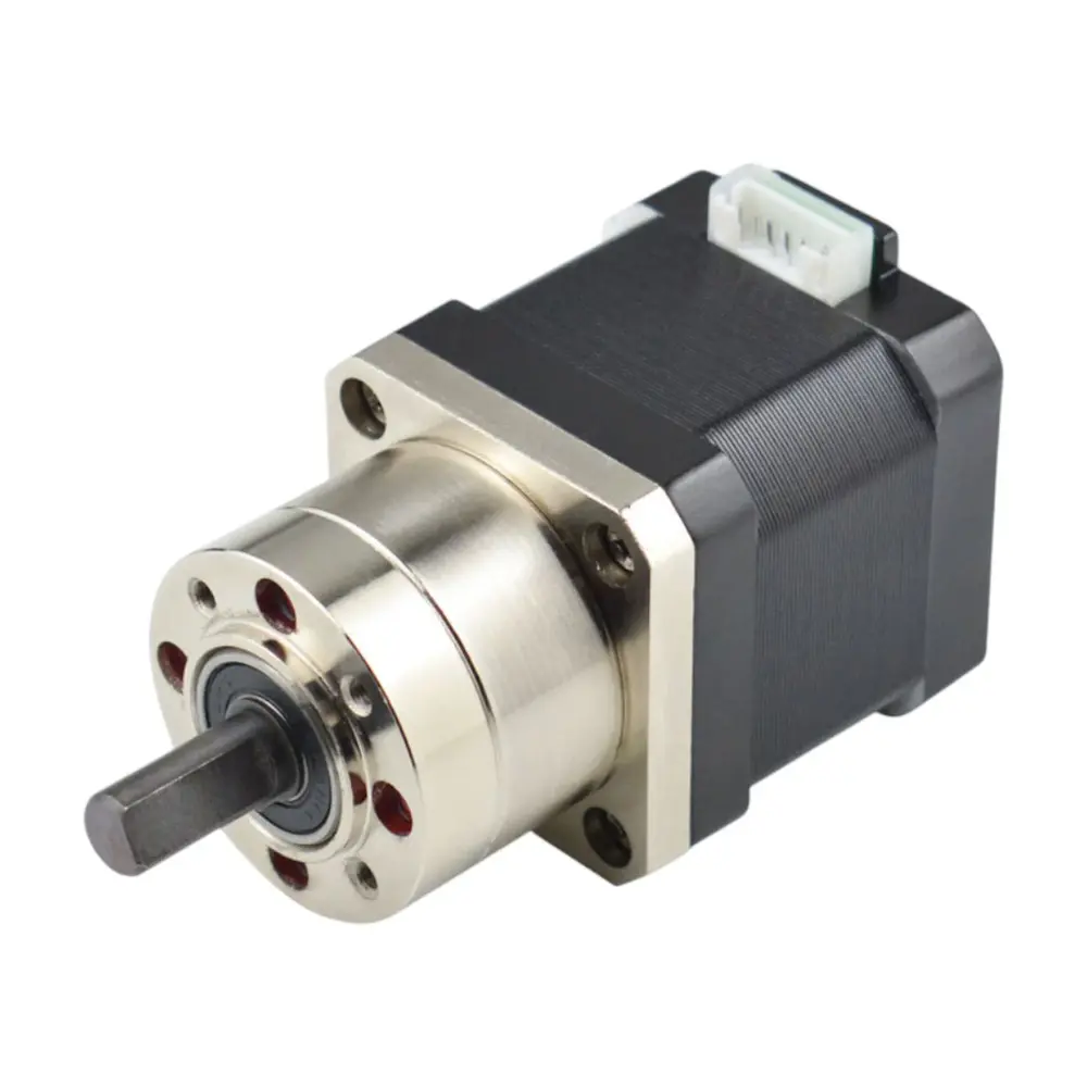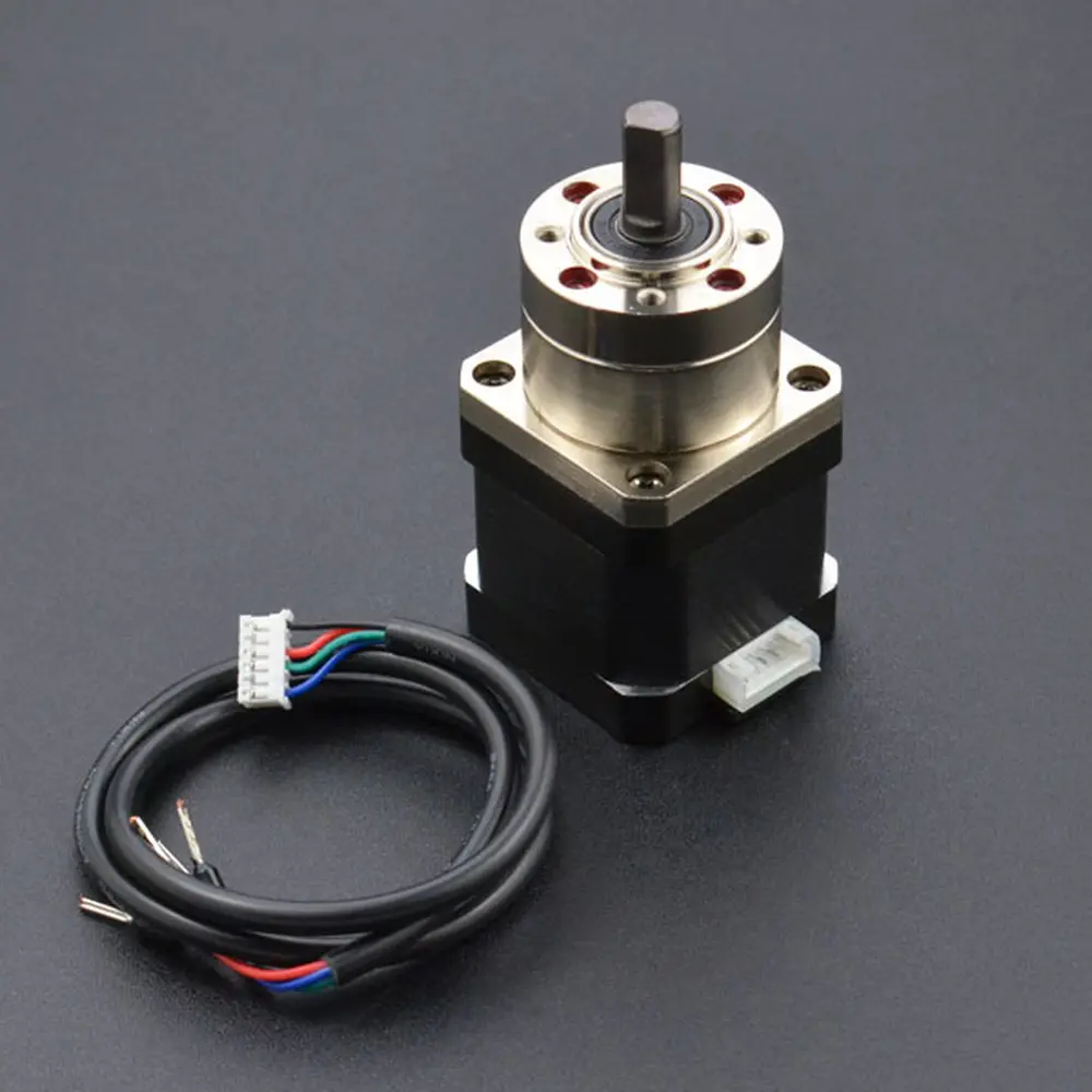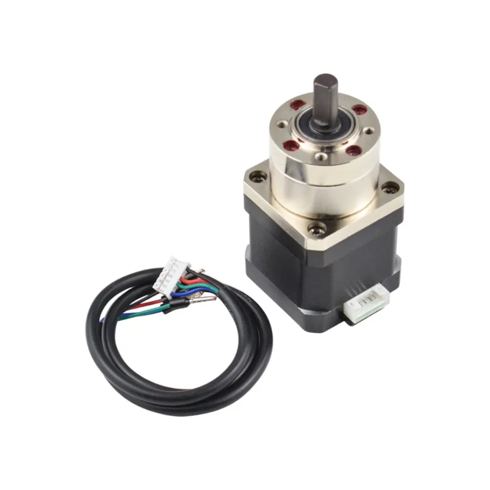 Deze bipolaire stappenmotor levert precisie met een staphoek van 1,8°, wat 200 stappen per omwenteling mogelijk maakt voor een soepele en nauwkeurige positionering. Hij is voorzien van een planetaire tandwielkast met een gear ratio 5,18, wat het output verhoogt en robuuste prestaties mogelijk maakt in veeleisende toepassingen. Bereik een optimaal houdkoppel van 18 kg-cm met een stroomopname van 1,0 A bij 3,4 V per fase.