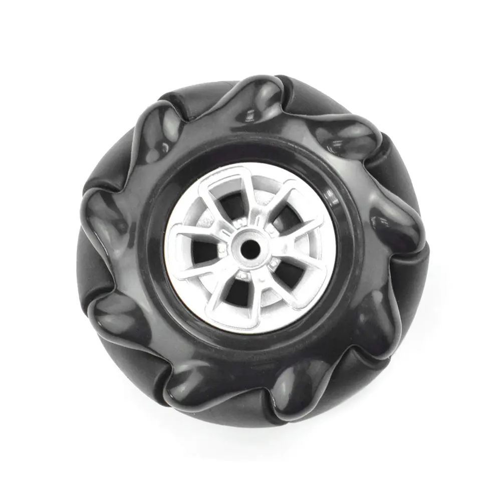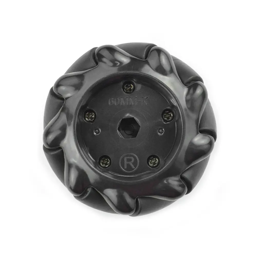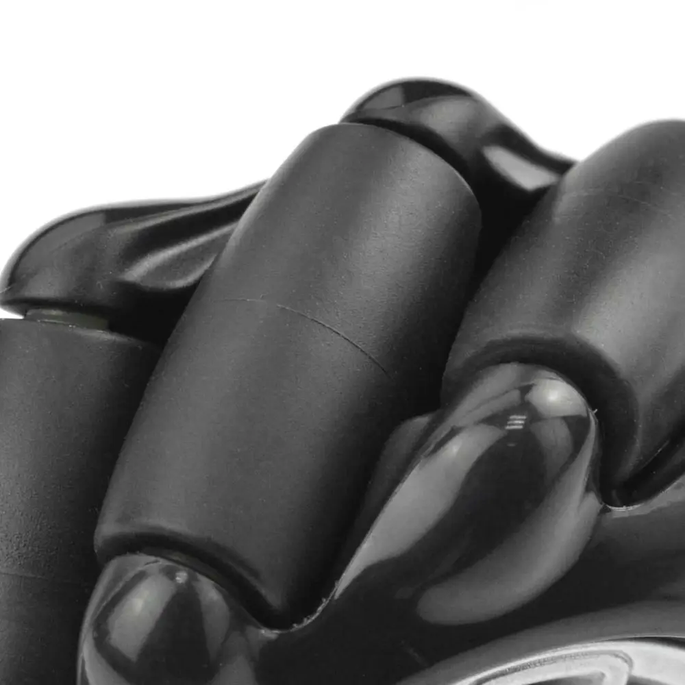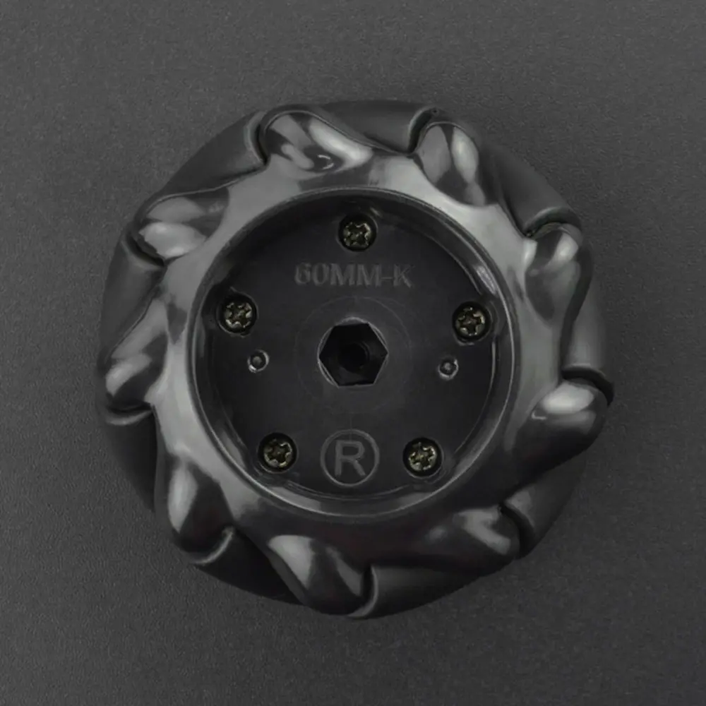 Met een doordacht ontworpen diameter van 60 mm is elk Mecanum-wiel uitgerust met 9 zorgvuldig geplaatste rollen. Deze rollen zijn gemaakt van robuust kunststof, omhuld met siliconenrubber met hoge wrijving voor maximale grip en duurzaamheid. Ze zijn robuust genoeg om schokken te weerstaan zonder in te leveren op prestaties, zodat uw robot mobiel en responsief blijft op uiteenlopende terreinen.