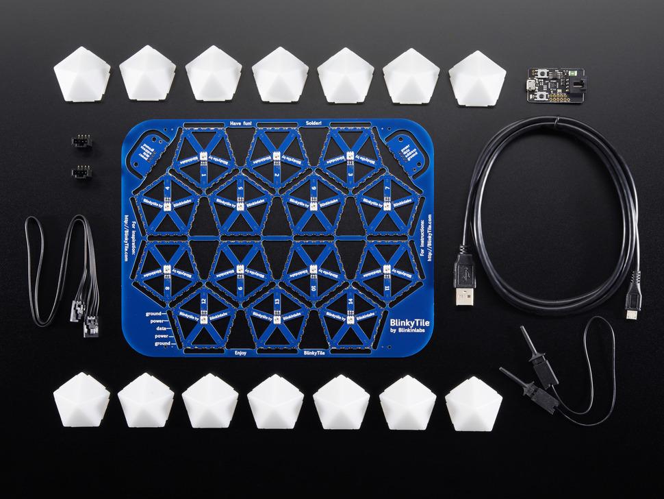 De kit bevat 14 BlinkyTiles, 14 klik-in lichtdiffusers, een Lightbuddy LED-controller, een LED-datakabel en een USB kabel, waarmee je alles hebt wat je nodig hebt om je creatieve visie tot leven te brengen. Extra gereedschap zoals een soldeerbout, soldeer en tape zijn niet inbegrepen, maar wel apart verkrijgbaar.