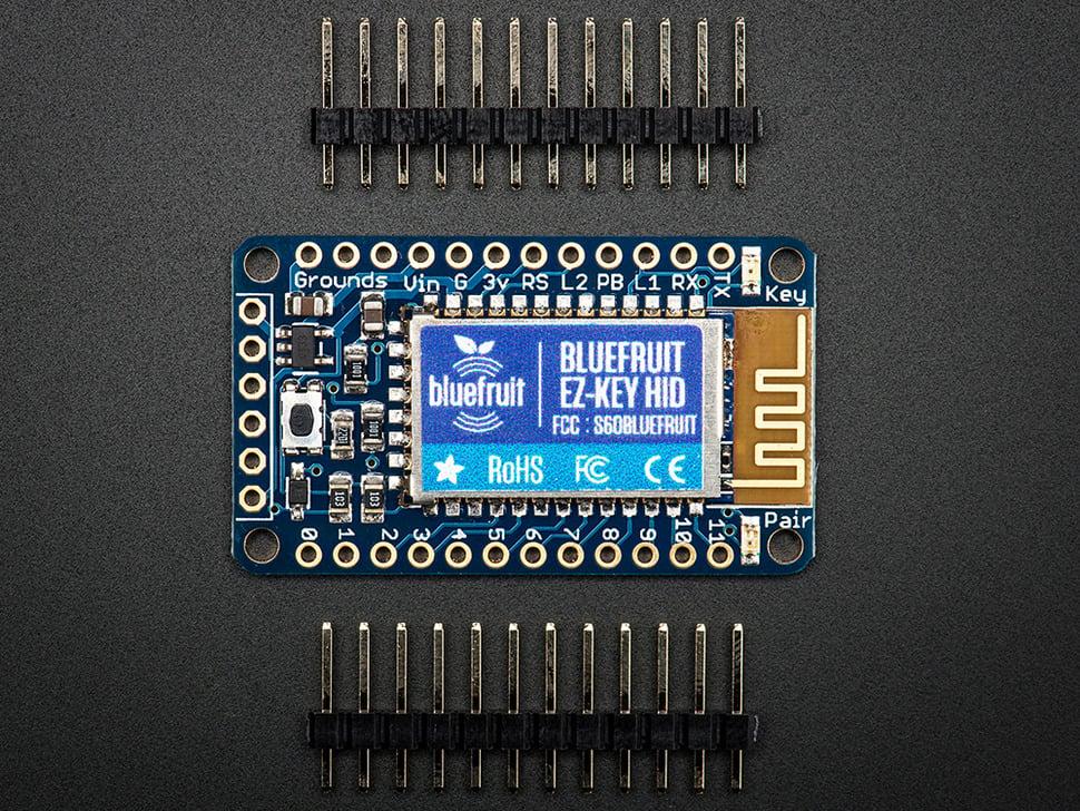 Creëer binnen een uur je eigen draadloze Bluetooth-toetsenbordcontroller met de Bluefruit EZ-Key. Deze gebruiksvriendelijke module fungeert als een Bluetooth-toetsenbord en is compatibel met elk Bluetooth-apparaat, zoals Mac, Windows, Linux, iOS en Android.