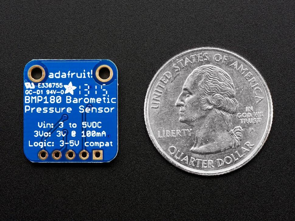 De installatie is eenvoudig: sluit de VIN-pin aan op een 5V-bron, GND op ground , SCL op I²C-klok en SDA op I²C-data. Arduino gebruikers kunnen eenvoudig de BMP085/BMP180- library gebruiken voor nauwkeurige temperatuur-, druk- en hoogtegegevens.