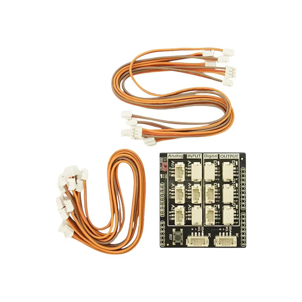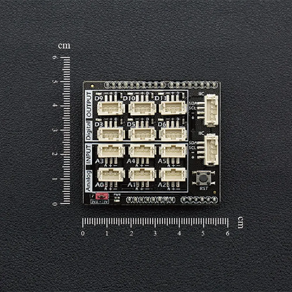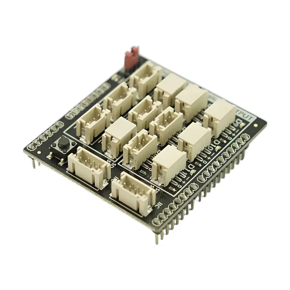 Uitgerust met veelzijdige digitale en analoge poorten, maakt het shield naadloze integratie met diverse sensoren en modules mogelijk, zodat u uw ideeën met precisie en helderheid tot leven kunt brengen. De toevoeging van i2C-poorten breidt de mogelijkheden verder uit, waardoor efficiënte communicatie tussen meerdere apparaten mogelijk is met minimale bedrading.