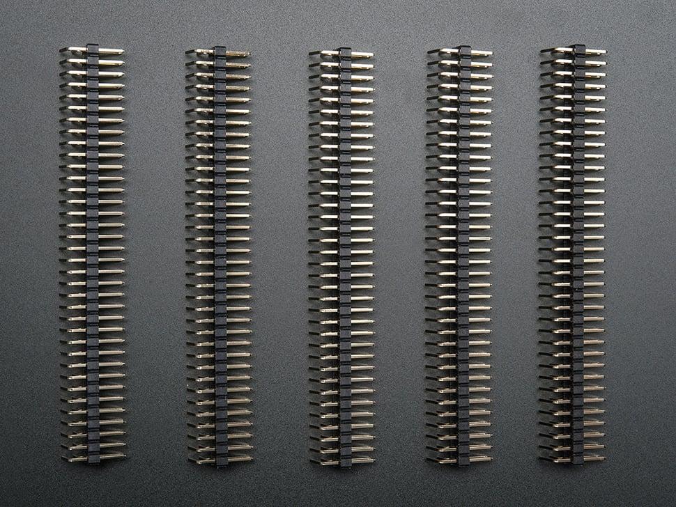 Deze verpakking bevat vijf dubbele, haakse male 2x36-pins lange headers met een pitch van 0,1 inch. De headers zijn ontworpen om te worden gestapeld op een raster van 0,1 inch en kunnen eenvoudig worden gebroken met een tang of zijkniptang, waardoor ze in lengte kunnen worden aangepast aan uw behoeften.