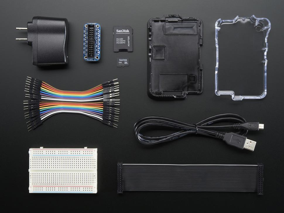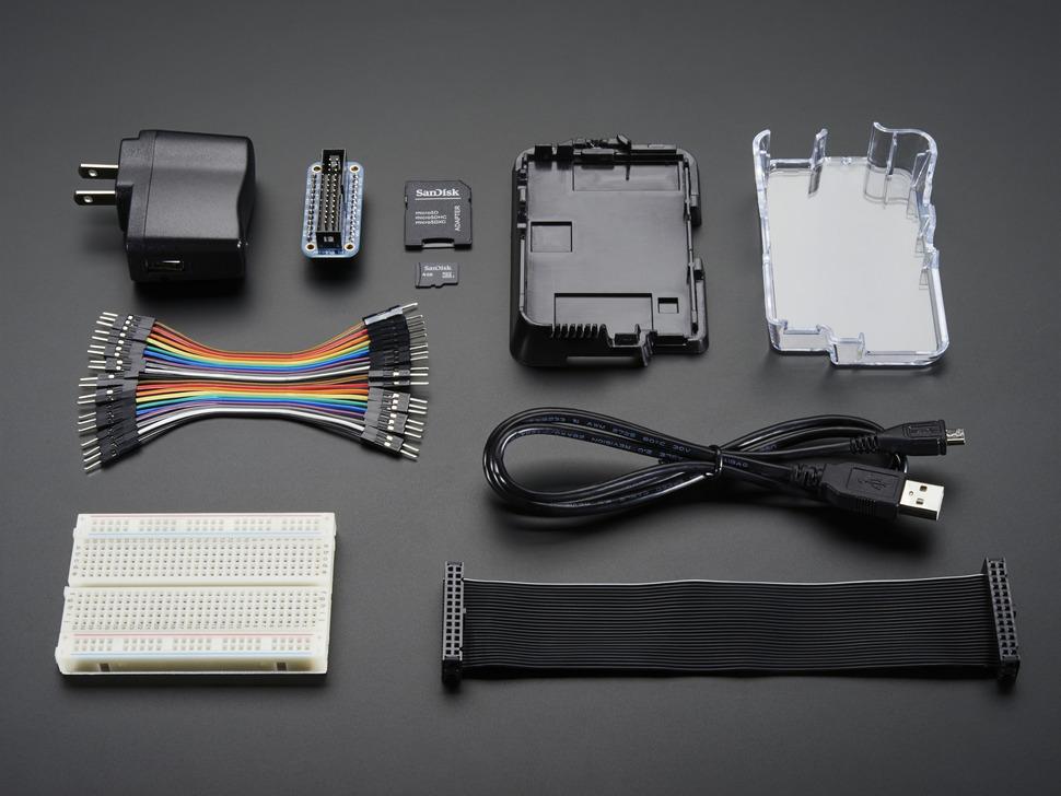 Dit pakket bevat een Adafruit Pi case voor bescherming en duurzaamheid, een USB Micro-B-kabel van 91 cm en een 5V 1A-stroomadapter die speciaal is ontworpen voor embedded Linux-machines en die betrouwbare stroomvoorziening biedt.