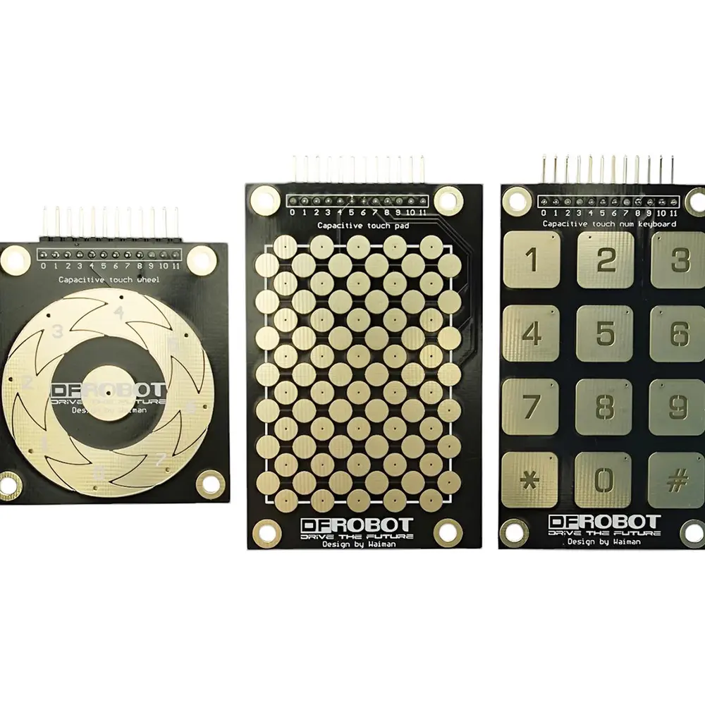 Til uw project naar een hoger niveau met de DFRobot touchkit, met drie verschillende typen aanraaksensoren. Het iPod-achtige touchwiel brengt intuïtieve, soepele, cirkelvormige interacties tot leven, terwijl het touchpad met toetsenblok een verlichte interface biedt, ideaal voor omgevingen met weinig licht. Het rastertouchpad voegt een extra dimensie toe met zijn unieke herkenningsmogelijkheden, waardoor diverse invoermethoden mogelijk zijn.