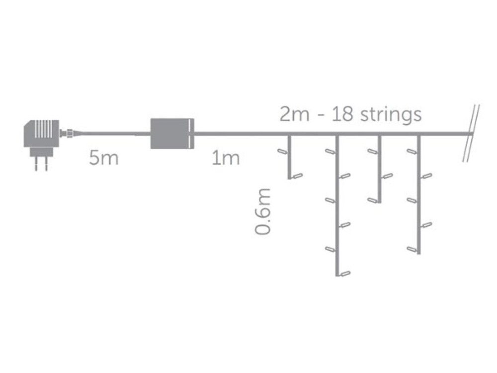 De Cascade Light LED zorgt voor betoverende verlichting met zijn 2 x 0,6 m configuratie, perfect voor het creëren van schitterende displays.