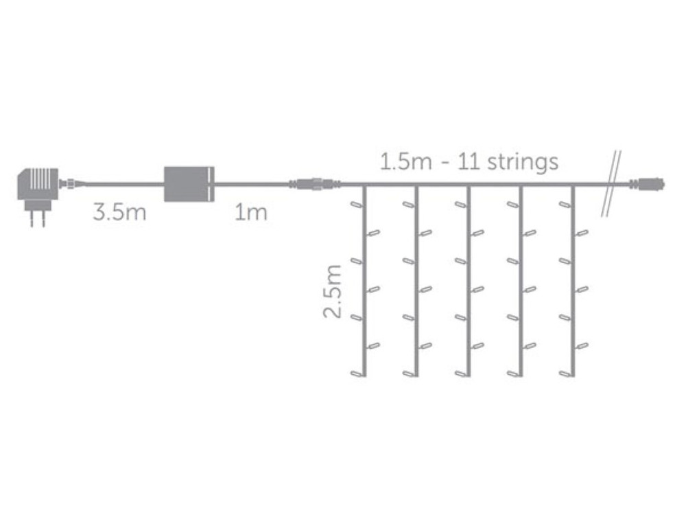 De Cascade Light LED biedt een betoverende verlichtingservaring met zijn ontwerp van 1,5 x 2,5 meter, met 286 warmwitte LED's langs een transparante kabel.