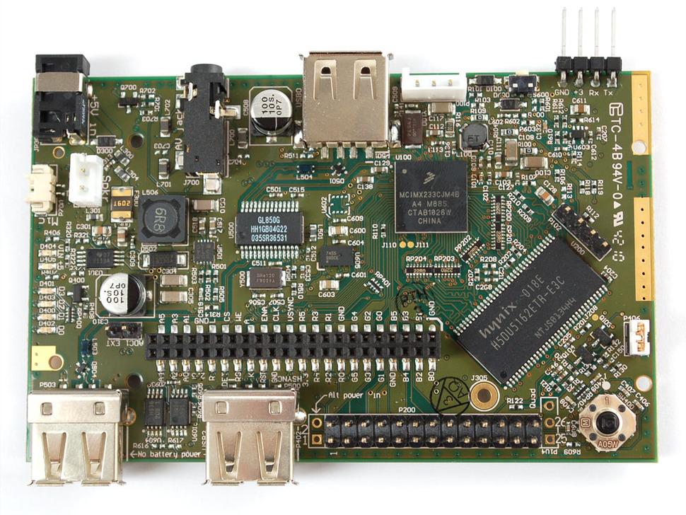 Dit compacte board is uitgerust met een Freescale iMX.233-processor op 454 MHz en 64 MB onboard RAM, en wordt geleverd met een 1 GB uSD-kaart met Linux-pre-installatie. Het is perfect voor interactie met sensoren en drivers via de 3,3 VI/O-pinnen, en de ingebouwde 5V- converter en energiezuinige, ventilatorloze CPU maken het ideaal voor draagbare projecten.