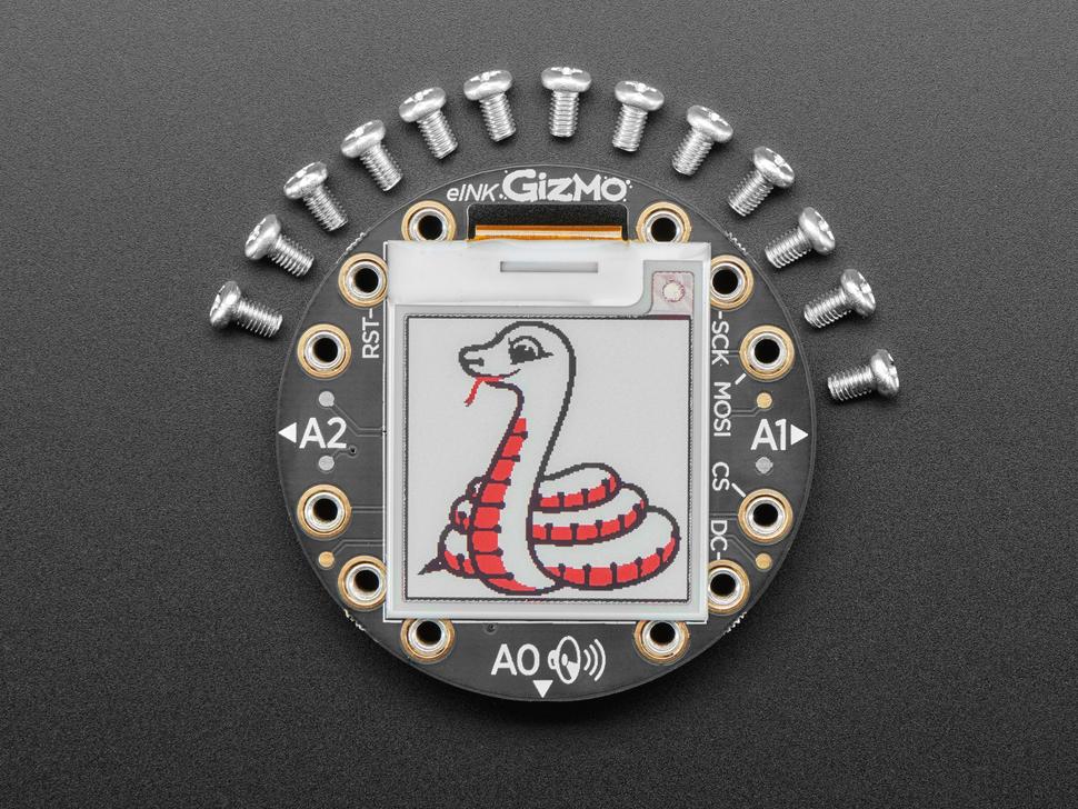 Transformeer je Circuit Playground in een veelzijdig e-reader-achtig apparaat met de Circuit Playground 200x200 Tri-Color E-Ink Gizmo. Deze robuuste E-Ink breakout heeft een rond PCB-ontwerp en stevige M3-afstandhouders voor betrouwbare mechanische en elektrische verbindingen.