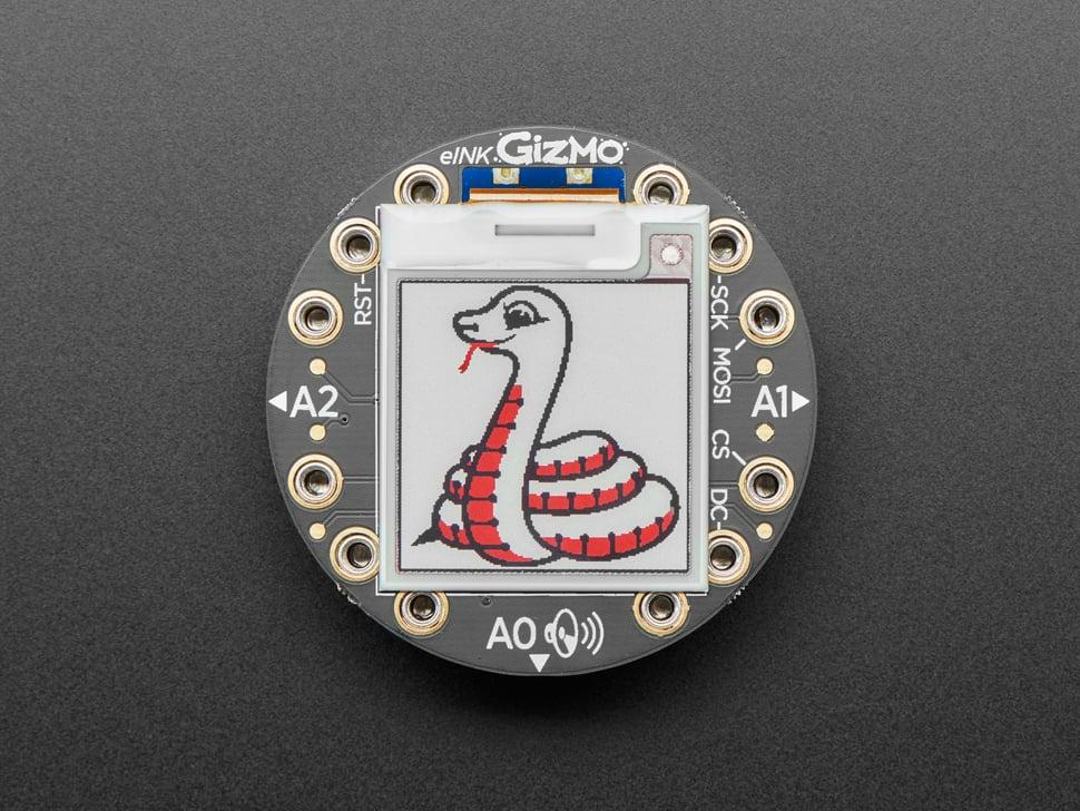Deze E-Ink Gizmo is uitgerust met twee 3-pins STEMMA connectoren voor het toevoegen van NeoPixel-strips of servo's en bevat een klasse D-audioversterker voor geluidsintegratie met behulp van een Molex PicoBlade-connector en compatibele luidsprekers.