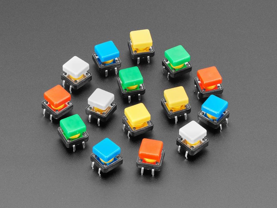 Adafruit Kleurrijke 12 mm vierkante tactiele knopschakelaarassortiment - 15 stuks
