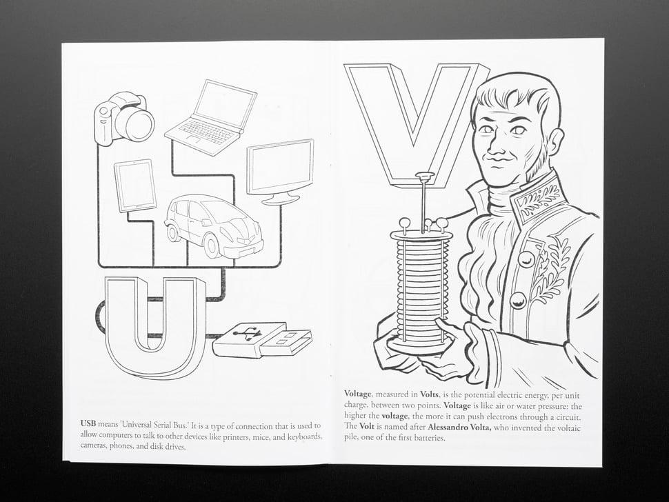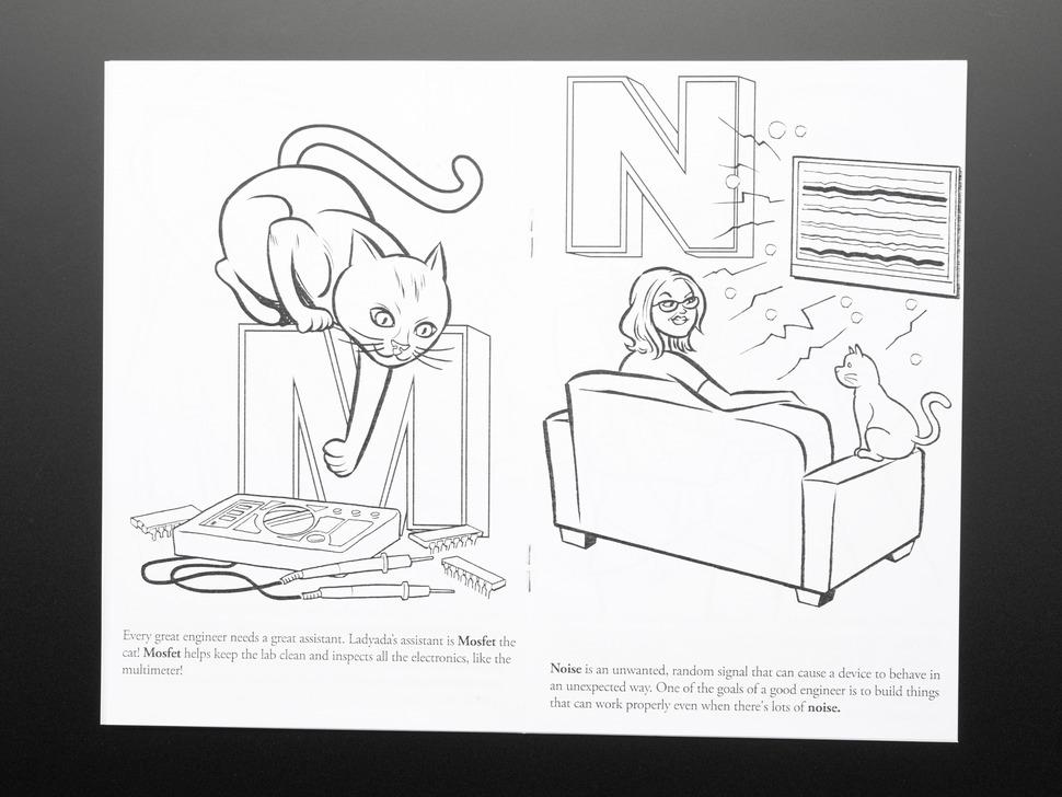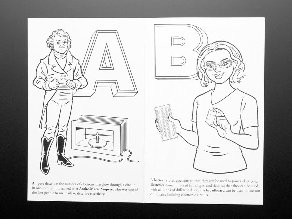 Ladyada's "E is for Electronics" biedt een creatieve reis door de wereld van elektronische componenten en hun uitvinders. Dit boeiende kleurboek laat gebruikers de geschiedenis van elektronica leren kennen, kleuren en ermee in contact komen.