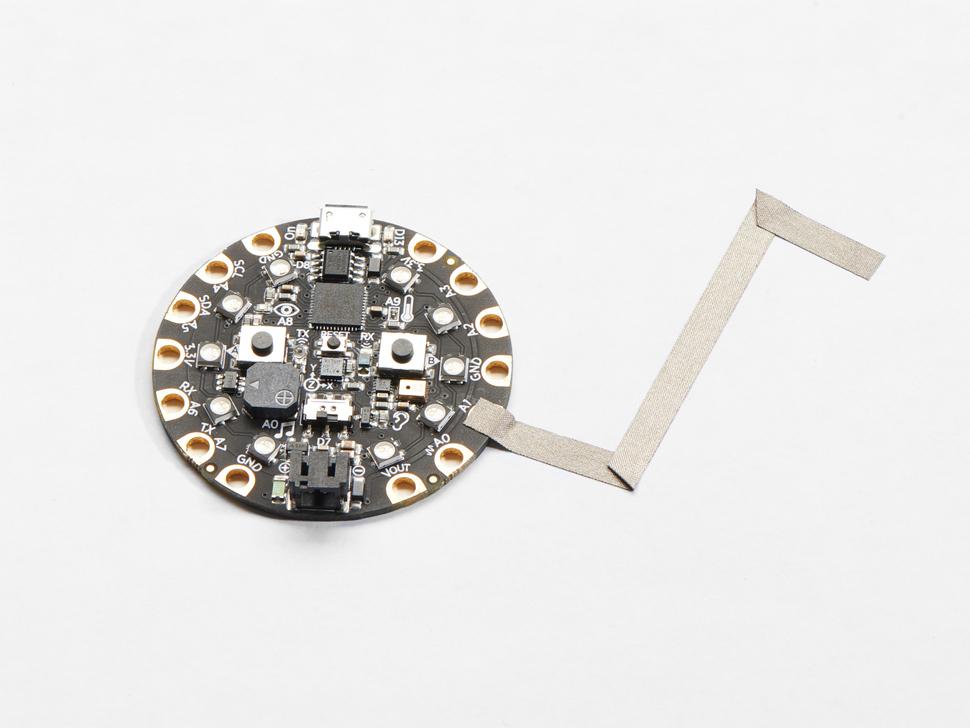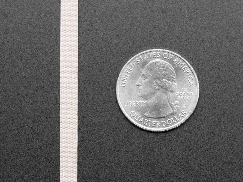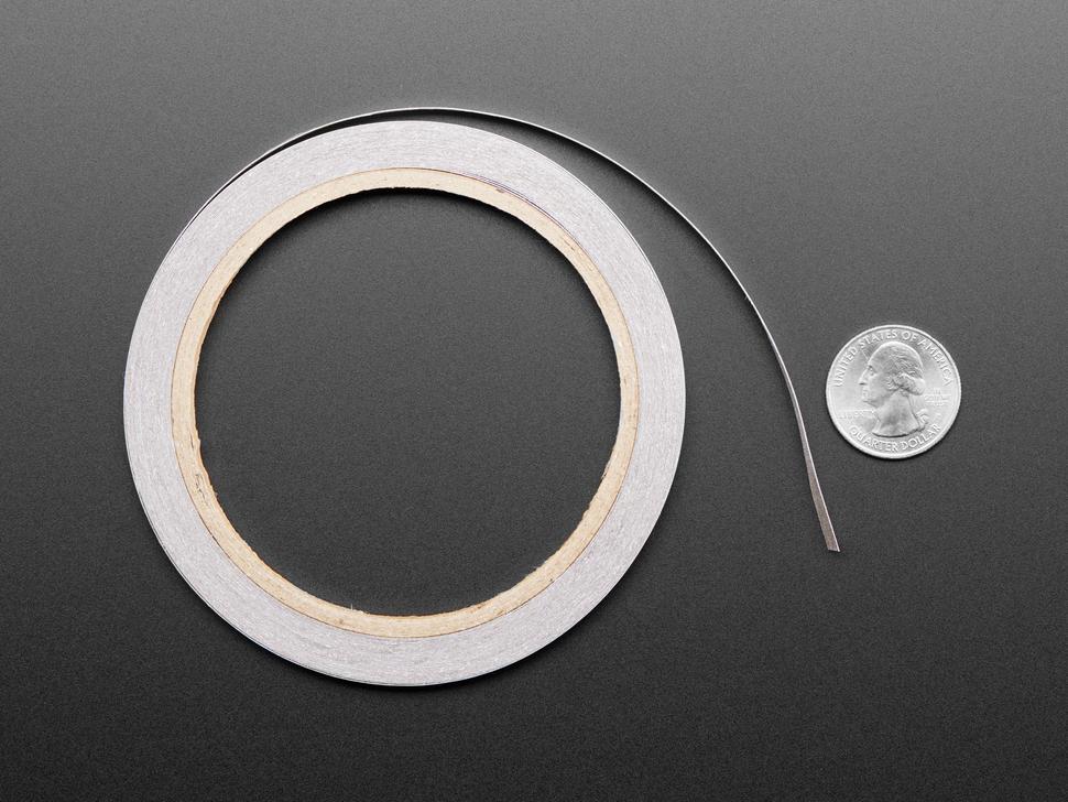 Met geleidende lijm aan de achterkant, plak het direct op capacitieve pads. Met een hoge geleidbaarheid van slechts enkele ohm per voet, is het geschikt voor het aansturen van kleine componenten. Hoewel het niet gesoldeerd kan worden zoals kopertape, is het wel naai-baar, dus ideaal voor toepassingen op stof.