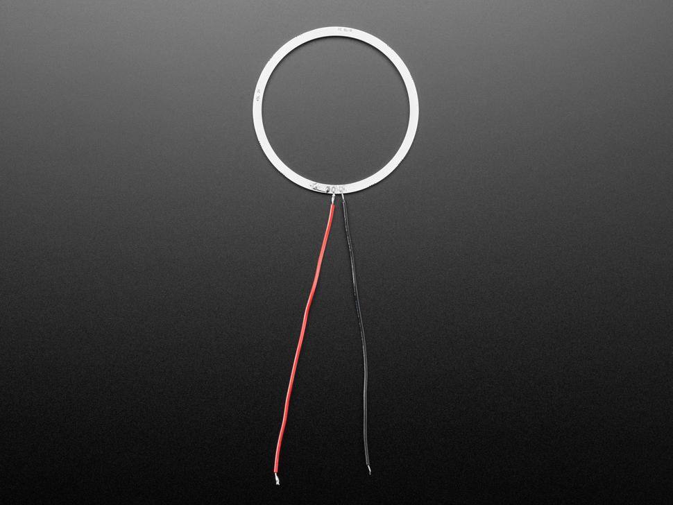 Let op: deze ring heeft veel leds en omdat hij niet in een case zit, wordt hij heet. Als je hem langer dan een minuut aan wilt laten staan, kun je een koellichaam toevoegen, PWM gebruiken of hem op een lagere spanning aansturen door een diode of weerstand in serie te plaatsen om de stroom te verlagen. Dit zijn geen 'NeoPixel'-leds; je kunt het geheel aan- en uitzetten of dimmen met een PWM-voedingssignaal, maar je kunt geen individuele leds inschakelen.
