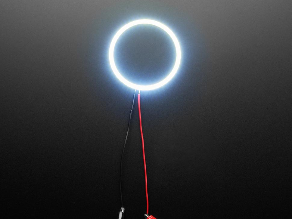 Dit is de makkelijkste manier om een koelwit LED-element toe te voegen voor kostuums, lichteffecten of iets anders. Natuurlijk kun je deze koelwitte LED-ringlamp ook gewoon gebruiken als verlichting voor je foto- en videoprojecten.