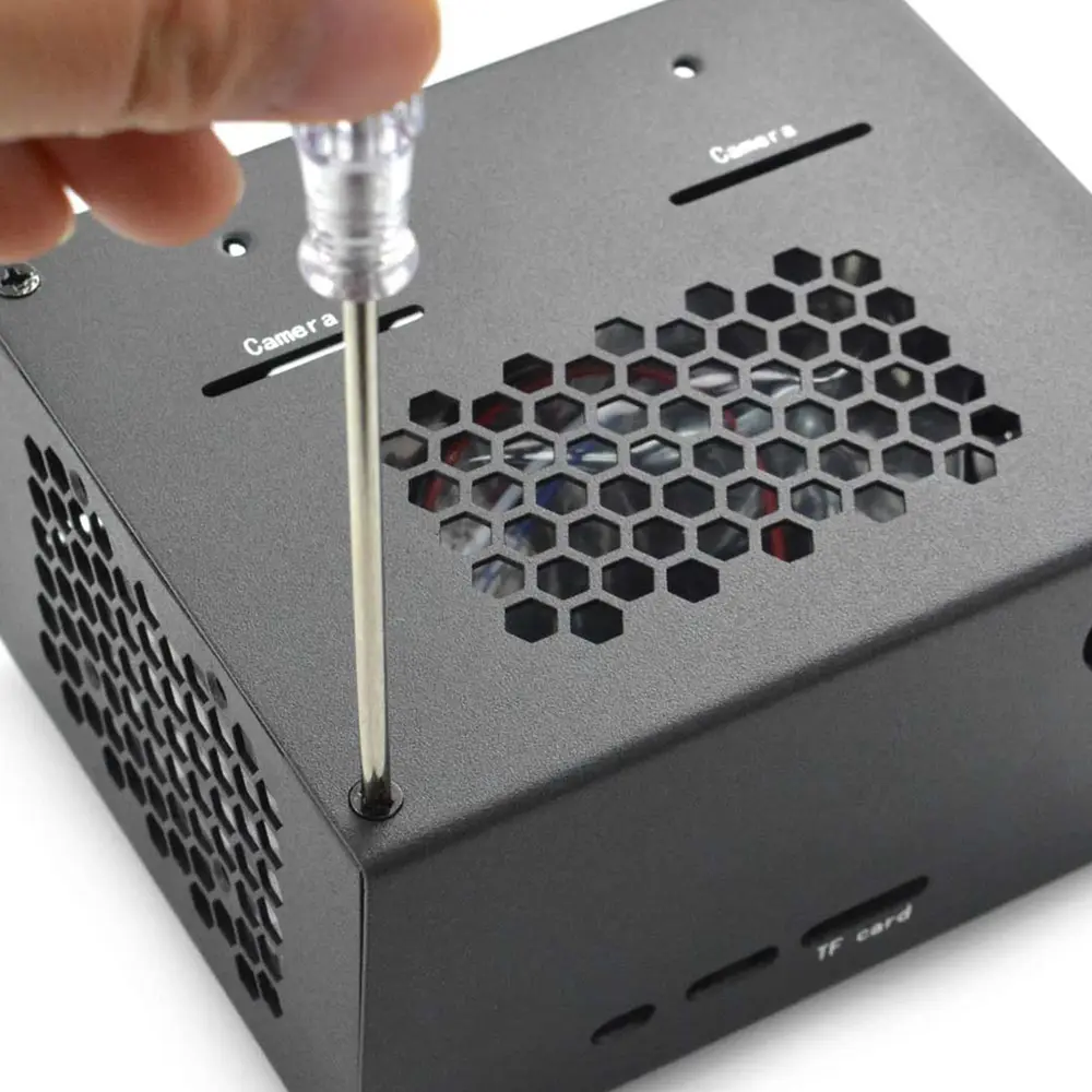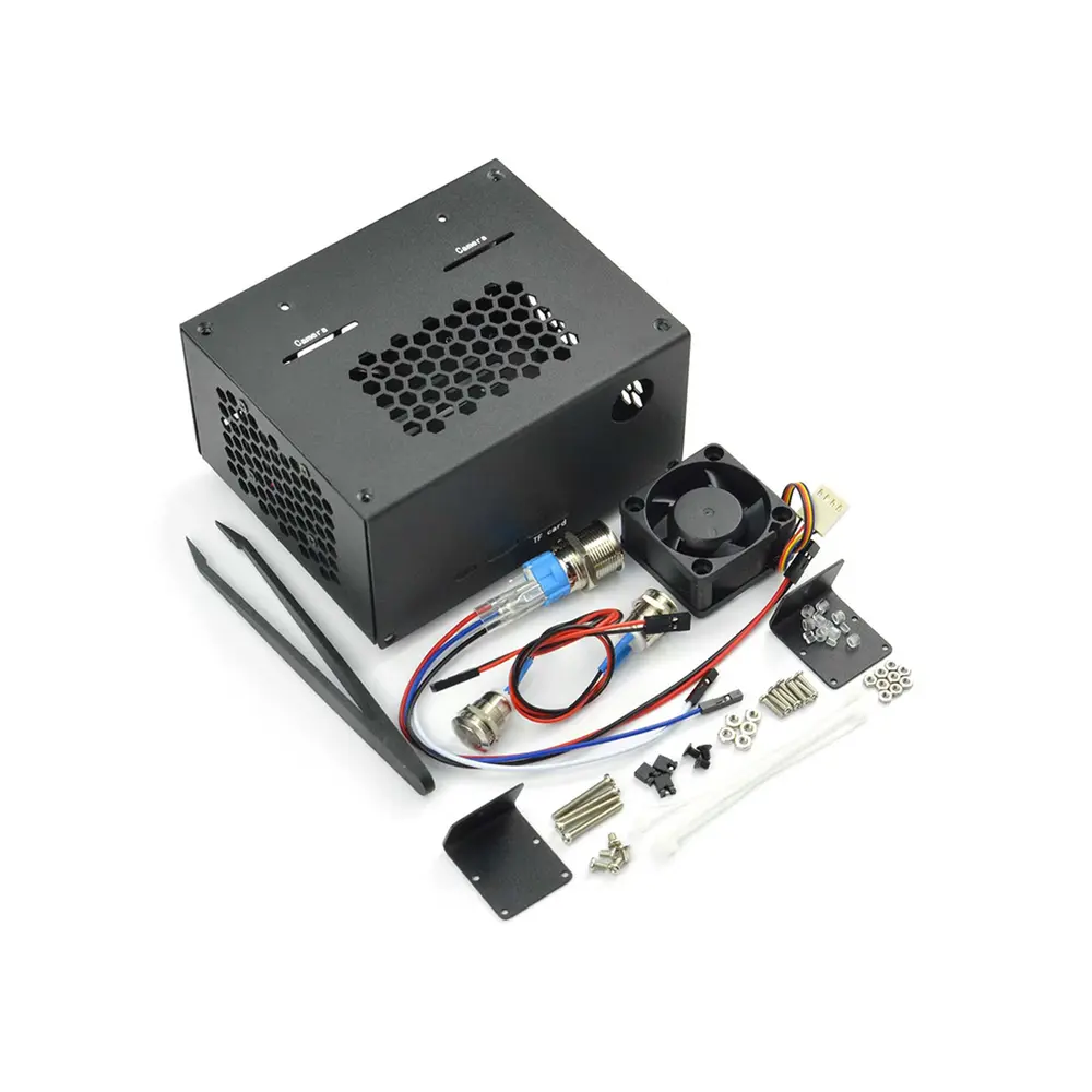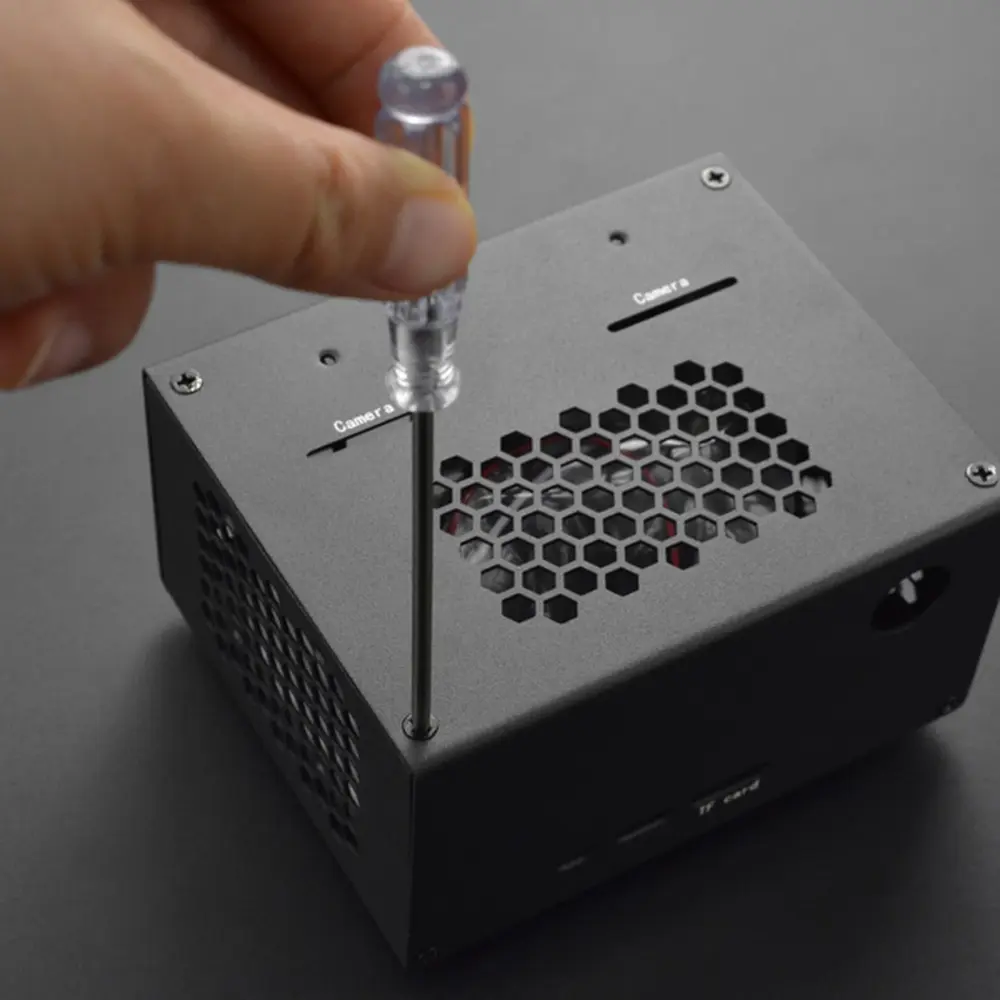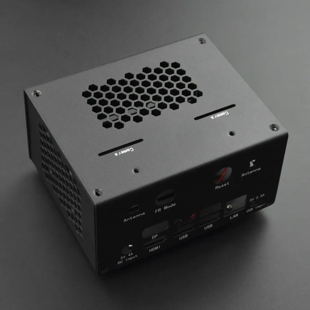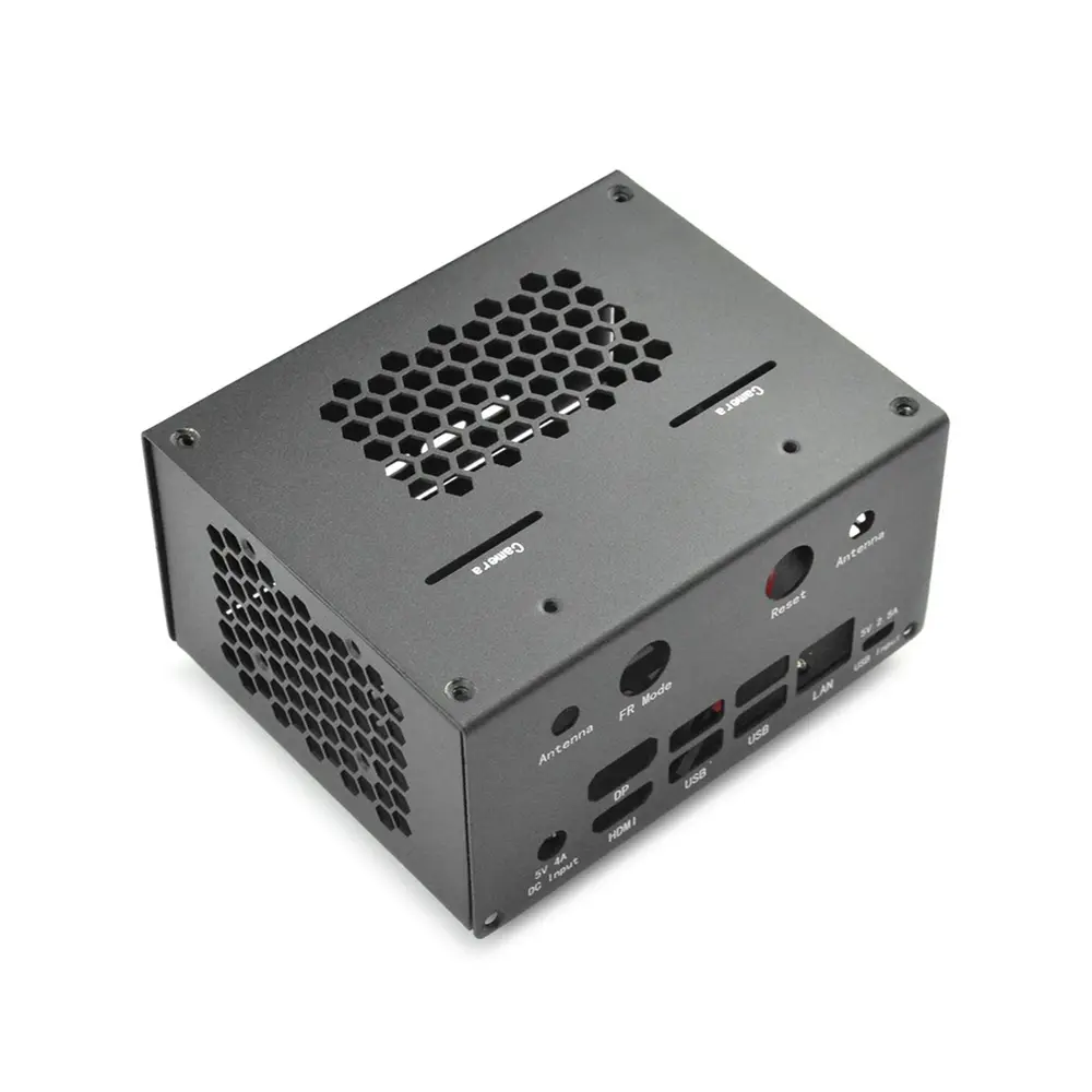 De case is doordacht ontworpen met twee antennegaten en een camerahouder om moeiteloos een antenne en de officiële Raspberry-camera te kunnen plaatsen. De honingraatvormige ventilatieopeningen spelen een cruciale rol bij de effectieve warmteafvoer, vooral tijdens intensieve taken zoals het trainen van neurale netwerken of het uitvoeren van machine vision-toepassingen.