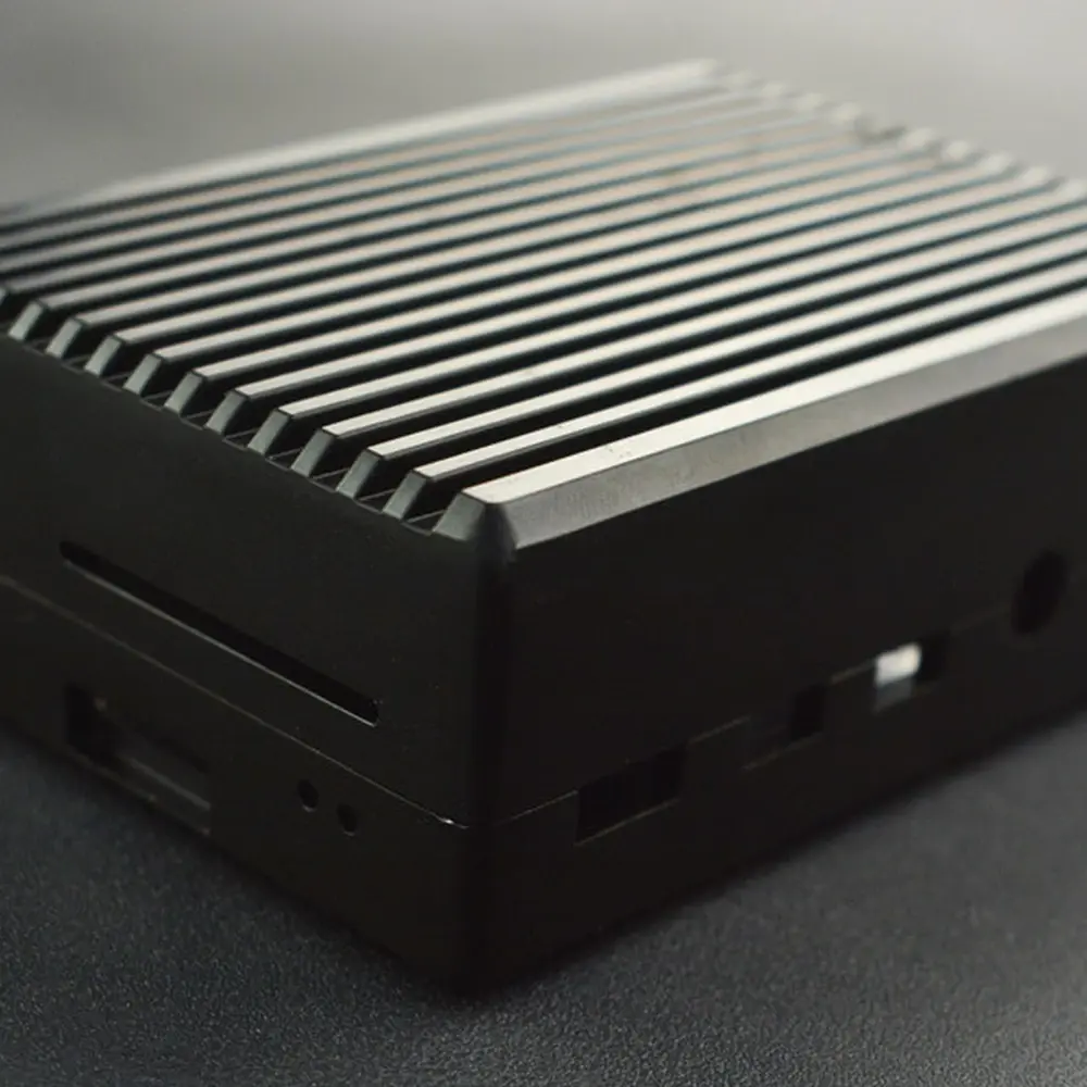 Deze case pakt de warmteproblemen van de Raspberry Pi 4B nauwkeurig aan. Volledig vervaardigd uit aluminiumlegering, is hij zowel lichtgewicht als duurzaam. De uitstekende thermische geleidbaarheid en corrosiebestendigheid beschermen het moederbord effectief. In de case zijn twee stevige koelpilaren strategisch geplaatst om dicht bij het Raspberry Pi board te blijven.