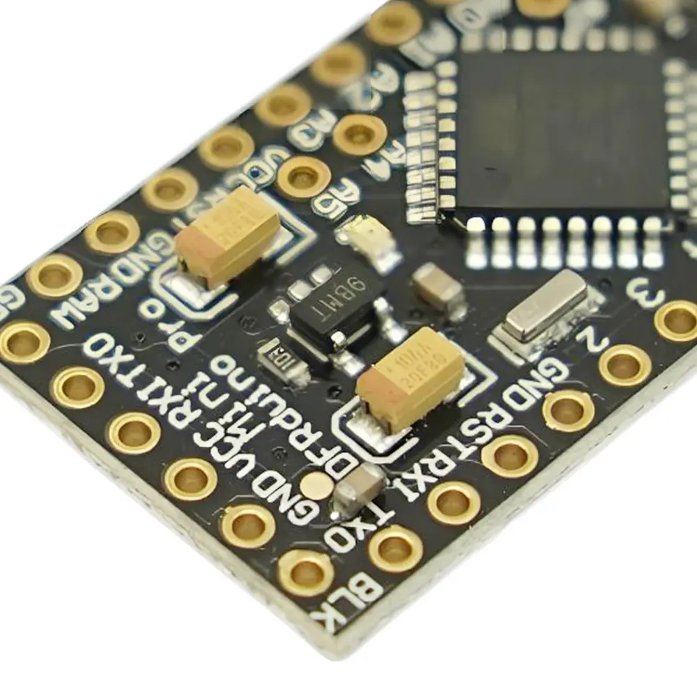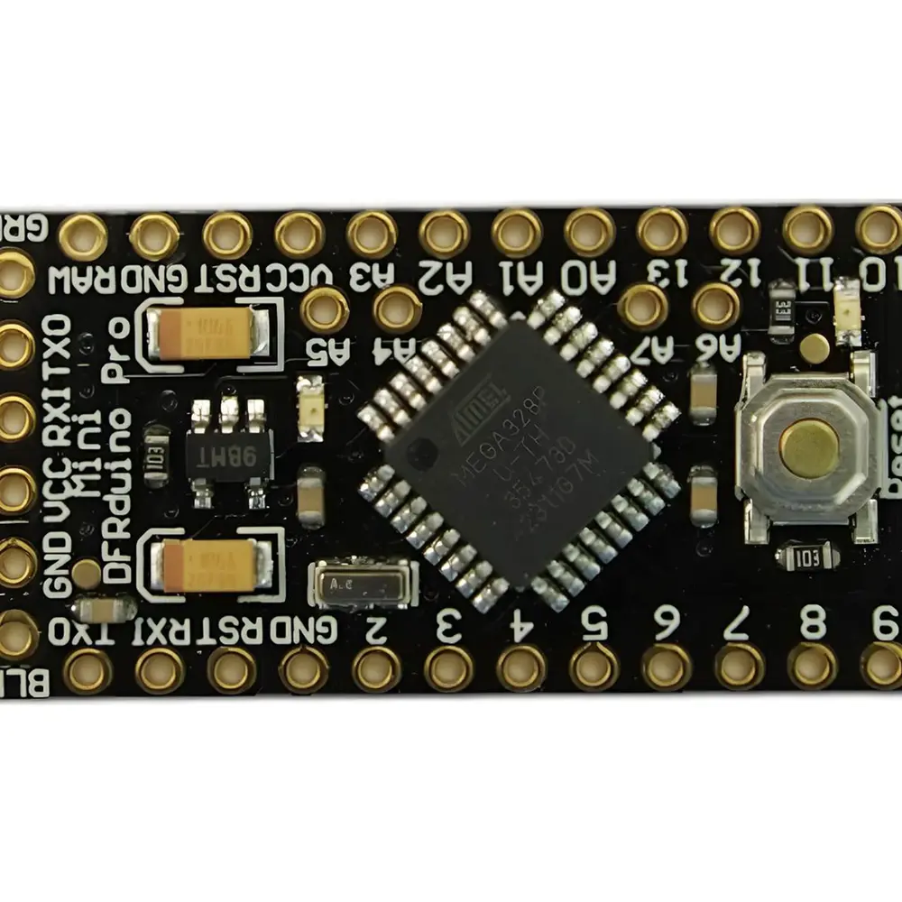 De 5V DFduino Pro Mini V1.3 is een krachtig board gebaseerd op de ATmega328-chip. Met een snelle 16 MHz en een speciaal ontworpen bootloader is dit een aanzienlijke upgrade ten opzichte van de standaard Arduino Pro Mini. Uitgerust met 8 analoge inputs in plaats van de traditionele 6, is de DFduino Pro Mini ontworpen voor verbeterde ingangsbewaking en -controle.