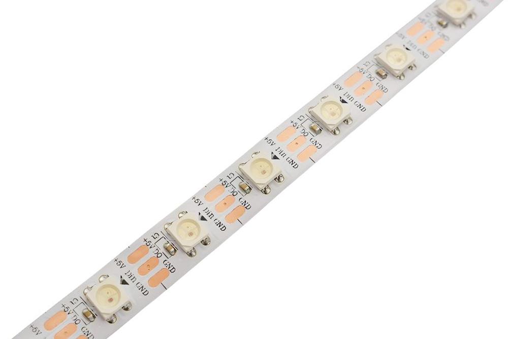 Deze digitale RGB LED-strip is voorzien van geavanceerde WS2812 RGB-technologie en transformeert elke ruimte met dynamische verlichting. Elke LED fungeert als een pixel en combineert rood, green en blauw voor een verbluffende display van 16777216 kleuren, allemaal regelbaar via één signaallijn. De helderheid van elke pixel kan nauwkeurig worden afgesteld in 256 niveaus, voor optimale precisie bij uw verlichtingsprojecten.