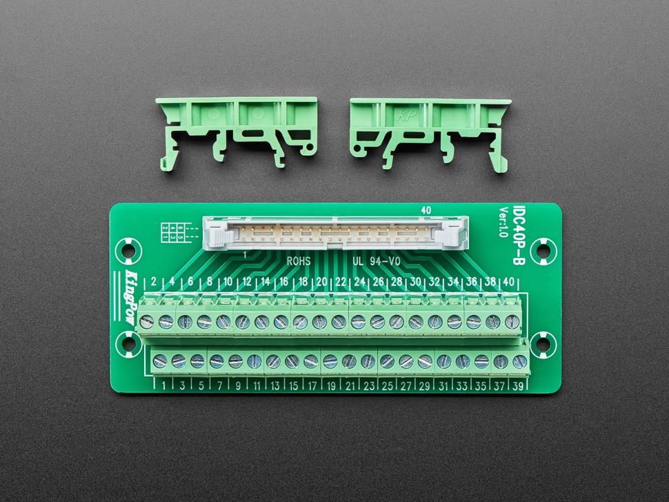 Deze adapterplaat is perfect om complexe bedrading eenvoudig te vereenvoudigen. Sluit een 2x20 IDC-kabel rechtstreeks aan op de printplaat, die op een DIN-rail kan worden gemonteerd. Alle 40 pinnen zijn handig broken out in terminal blocks , zodat u moeiteloos sensoren, displays en microcontrollers kunt aansluiten en van stroom kunt voorzien.