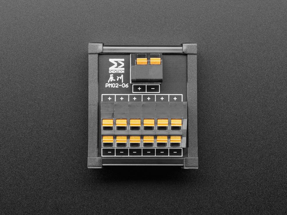 Deze adapterplaat is perfect voor het vereenvoudigen van complexe voedingsbedrading. Hij is voorzien van twee terminal blocks aan de ene kant en een set van 2x6 aangesloten klemmen aan de andere kant, wat de configuratie eenvoudig maakt.