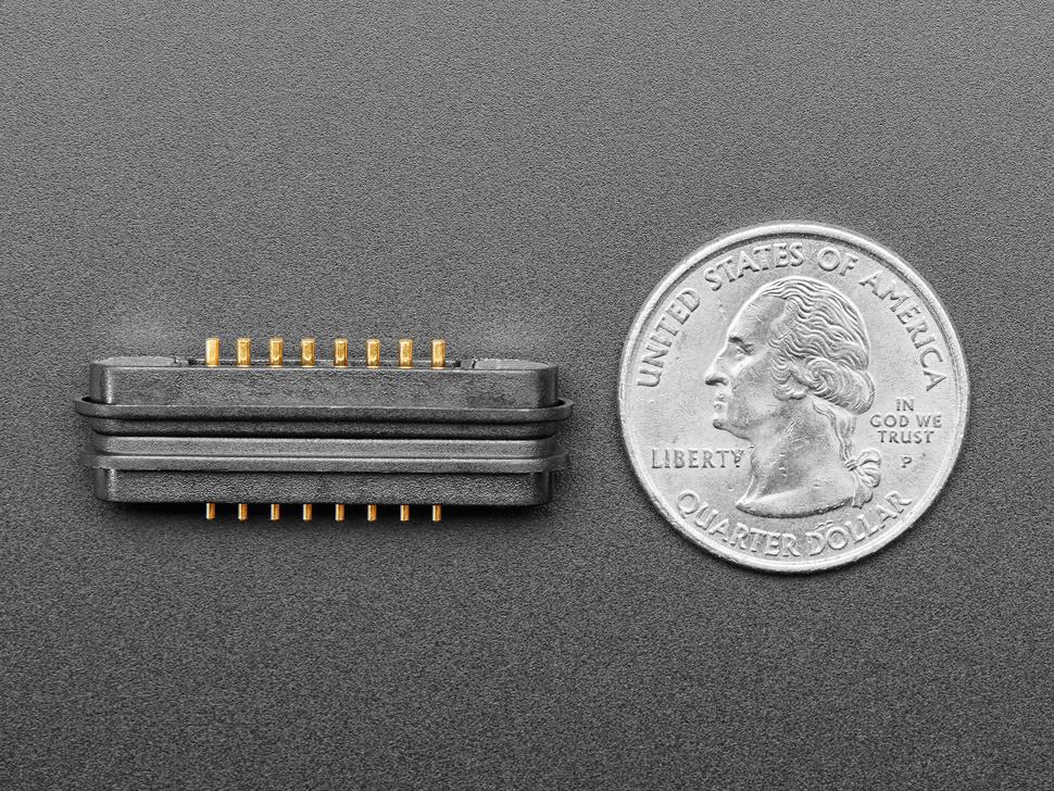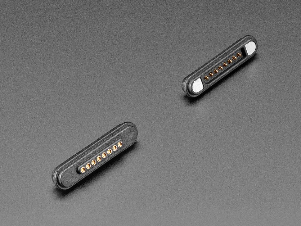 Experimenteer met futuristische magnetische connectors die ontworpen zijn voor makkelijke doe-het-zelf projecten. Deze connector heeft acht pogo pinnen met een afstand van 2,2 mm, die geschikt zijn voor een eenvoudige soldeerbare verbinding met je PCB. Net als de MagSafe-ervaring, zorgt het voor een betrouwbare magnetische aantrekkingskracht tussen de twee helften.