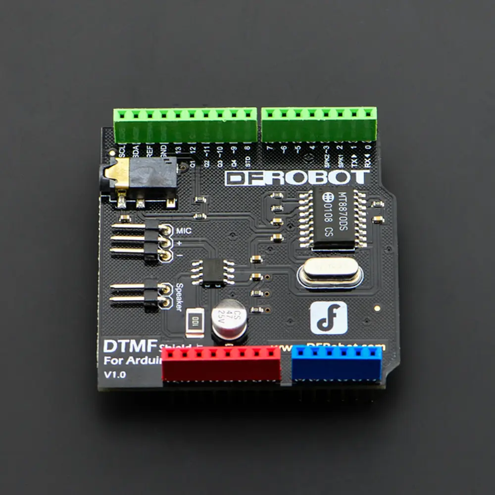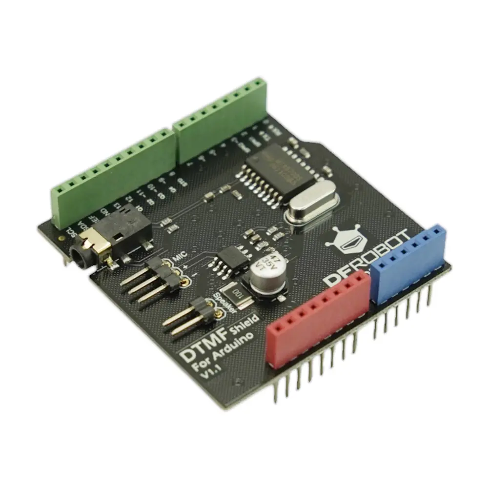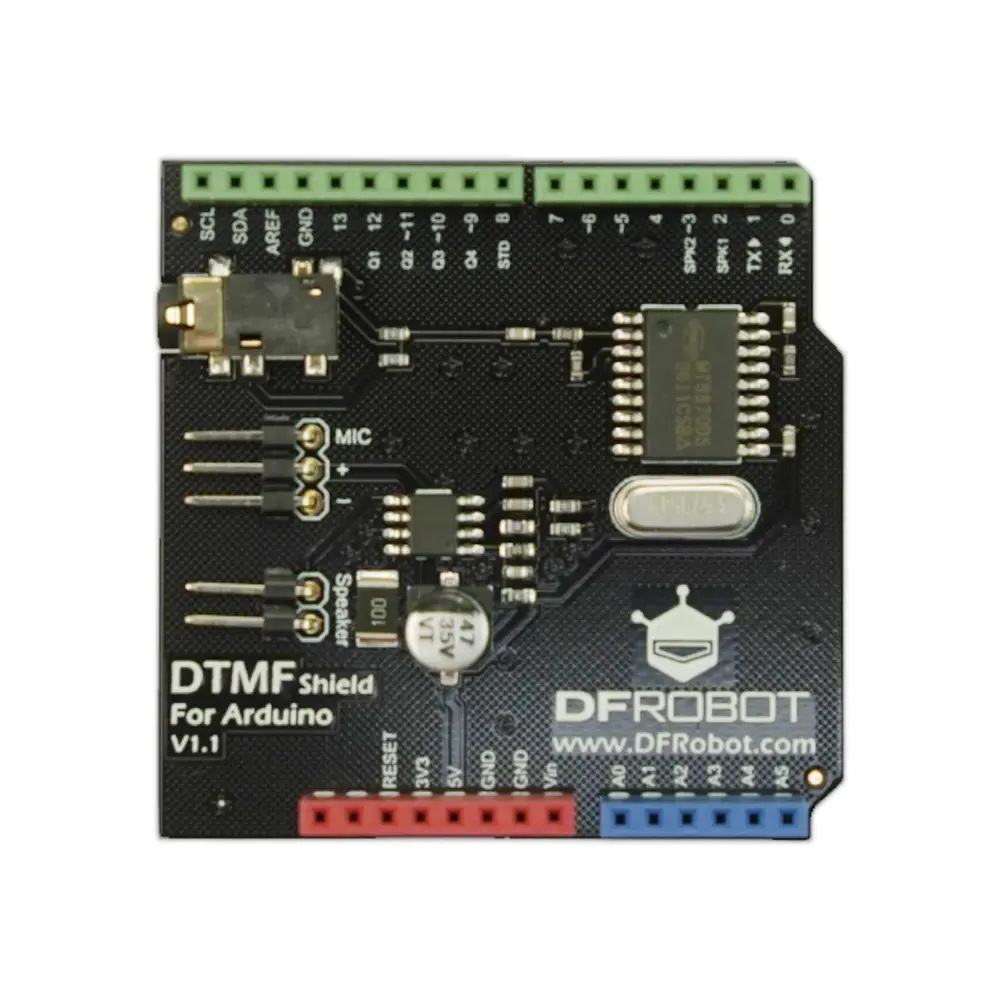 Stel je voor dat je geluid met een eenvoudig apparaat in actie kunt omzetten. Dit DTMF shield fungeert als een slimme brug tussen audiosignalen en je Arduino , waardoor je gewone telefoontonen kunt omzetten in krachtige commando's. Elke toetsaanslag op een telefoon produceert een uniek tweetonig geluid, en deze module decodeert die reeks moeiteloos. Zie het als een vertaler die de speelse piepjes van een telefoon vertaalt naar een taal die je projecten kunnen begrijpen.