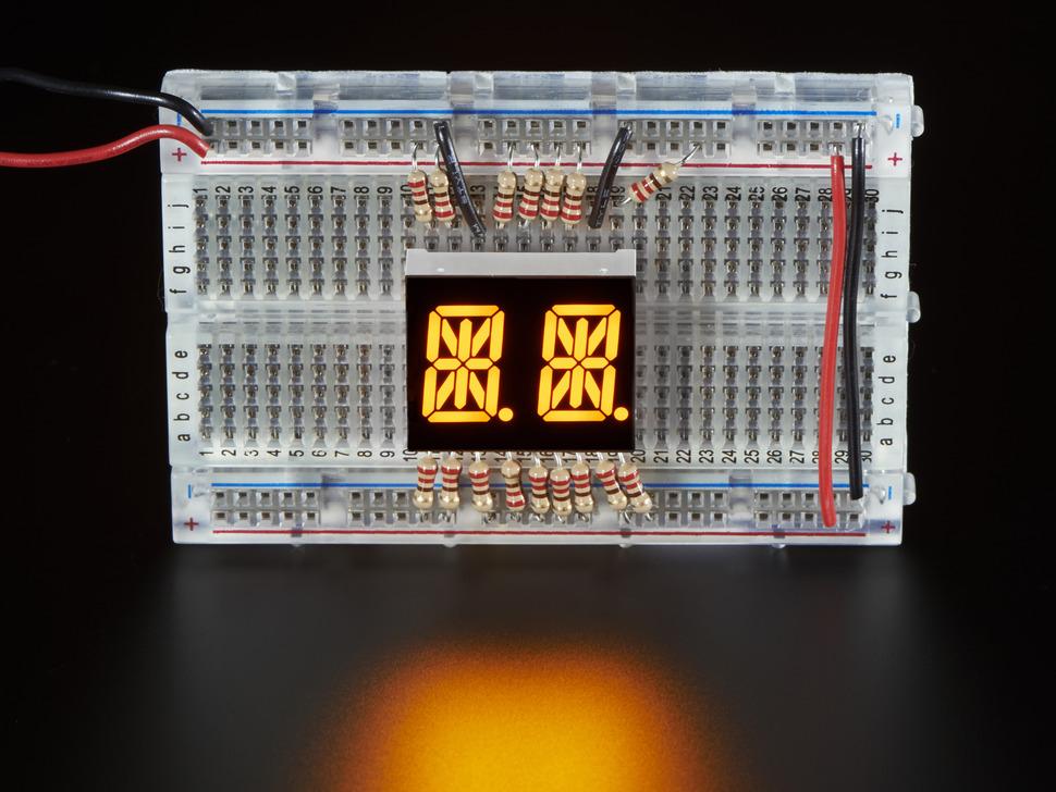 De displays zijn voorzien van negen pinnen aan elke kant, uitgelijnd met een tussenruimte van 0,1 inch, waardoor ze compatibel zijn met breadboards. Houd rekening met mogelijke kleurafwijkingen met andere gele displays als gevolg van productieverschillen.