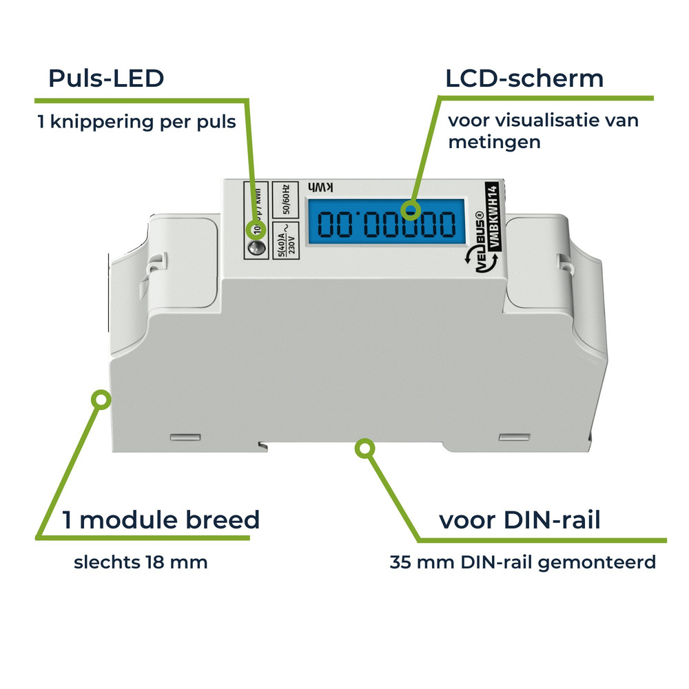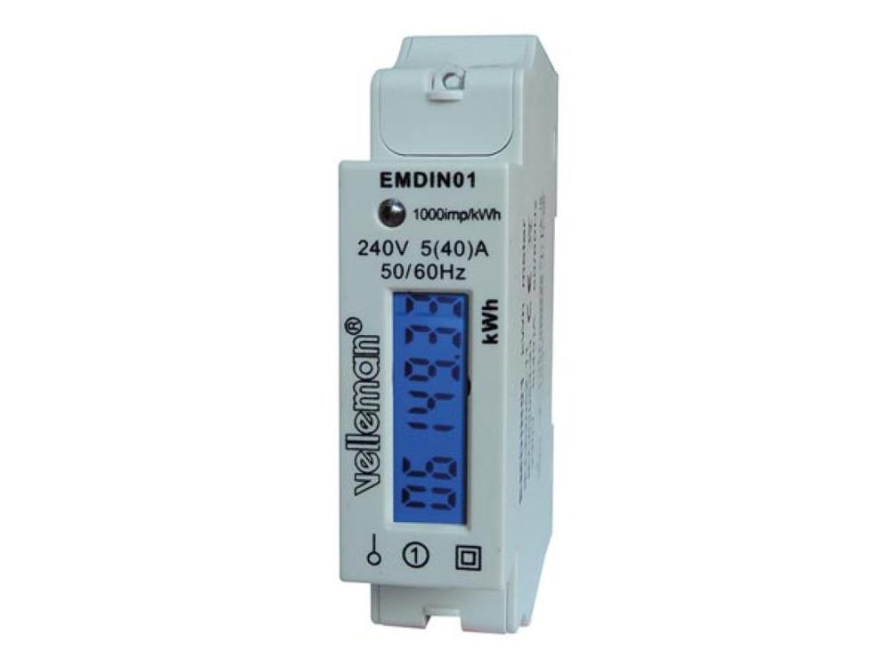Velleman Eenfase kWh-meter voor DIN-rail montage en 1 module