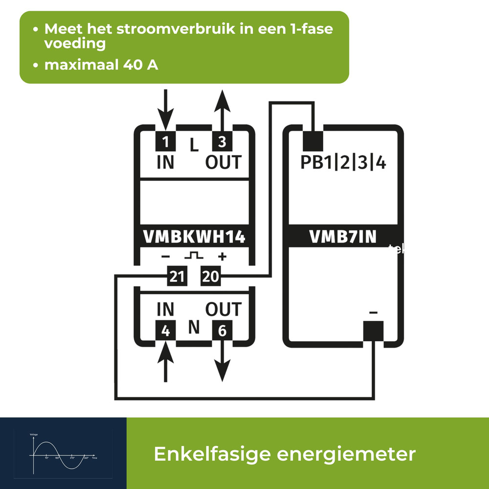 Velleman Eenfase kWh-meter voor DIN-rail montage en 1 module Klik op een ster om een beoordeling te geven