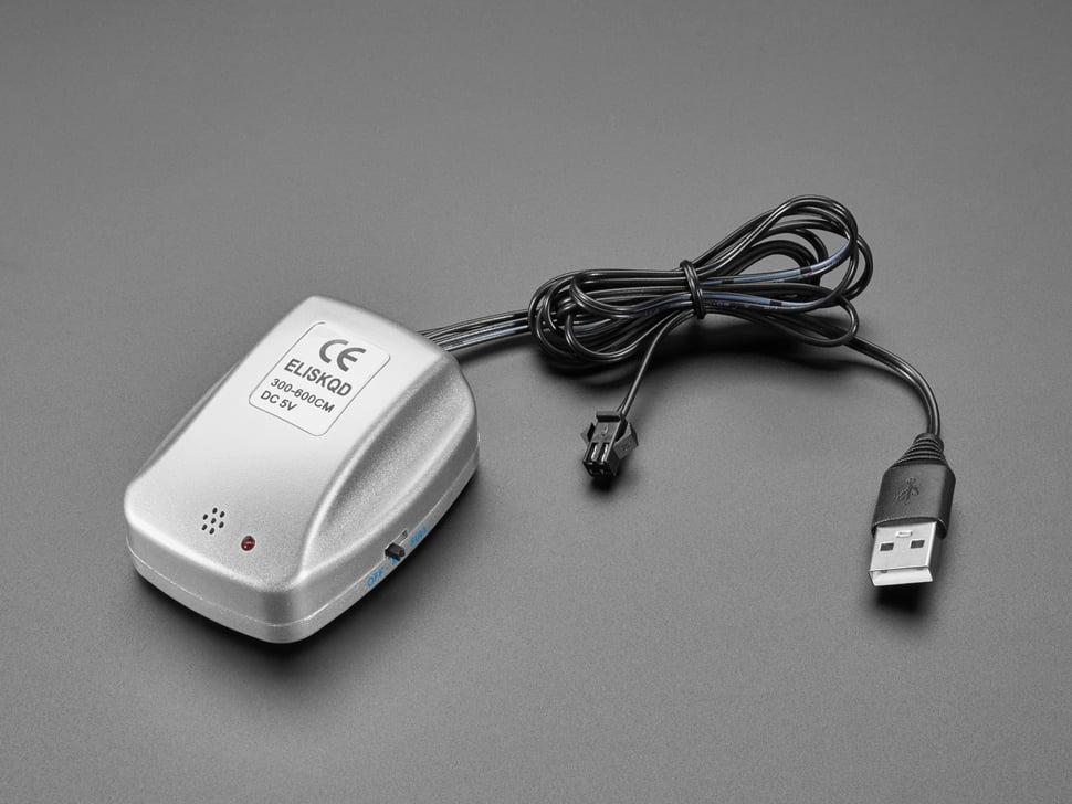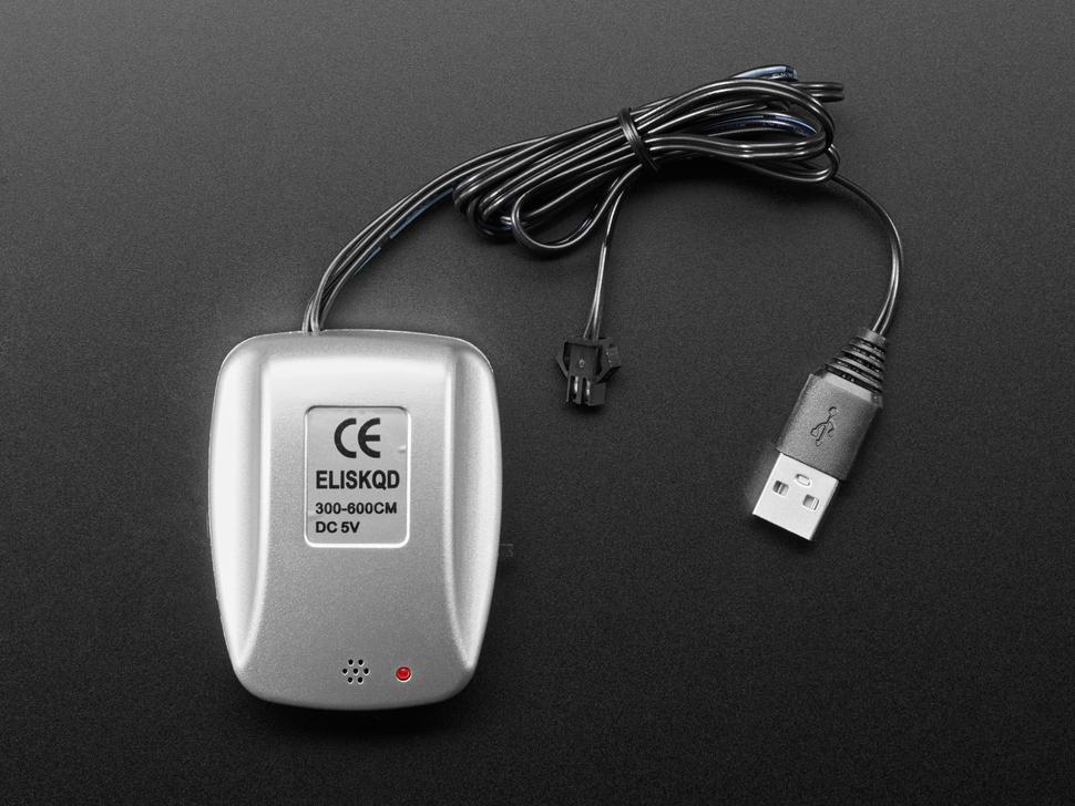 Deze omvormer werkt op een 5V-ingang en is compatibel met elke USB voeding. Hij voedt efficiënt tot 3 meter (10 voet) EL-draad met hoge helderheid, 1 meter (3 voet) EL-tape of een EL-paneel van 10 x 10 cm continu gedurende ongeveer 21 uur met 4 AA-batterijen.