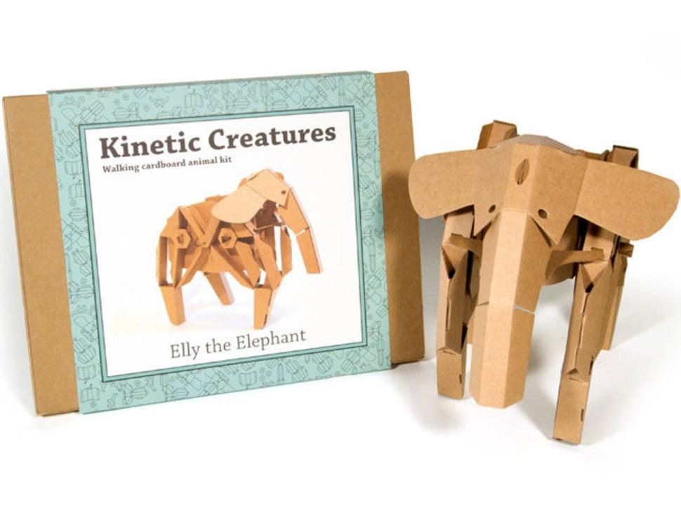 De set bevat 25 nauwkeurig voorgesneden en gerilde kartonnen stukken, een draaihendel van draad en zowel gedrukte als online video-instructies voor eenvoudige montage. Eenmaal gebouwd is Elly 29,5 cm hoog en 38 cm lang.