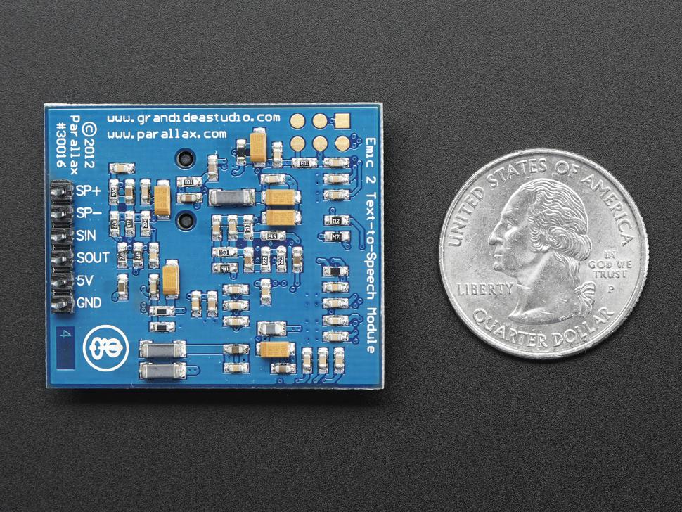 De Emic 2 Text-to-Speech Module, ontworpen door Parallax in samenwerking met Grand Idea Studio, is een geavanceerde spraaksynthesizer die digitale tekst omzet in natuurlijk klinkende spraak. De eenvoudige, op commando's gebaseerde interface zorgt voor naadloze integratie in elk embedded systeem.