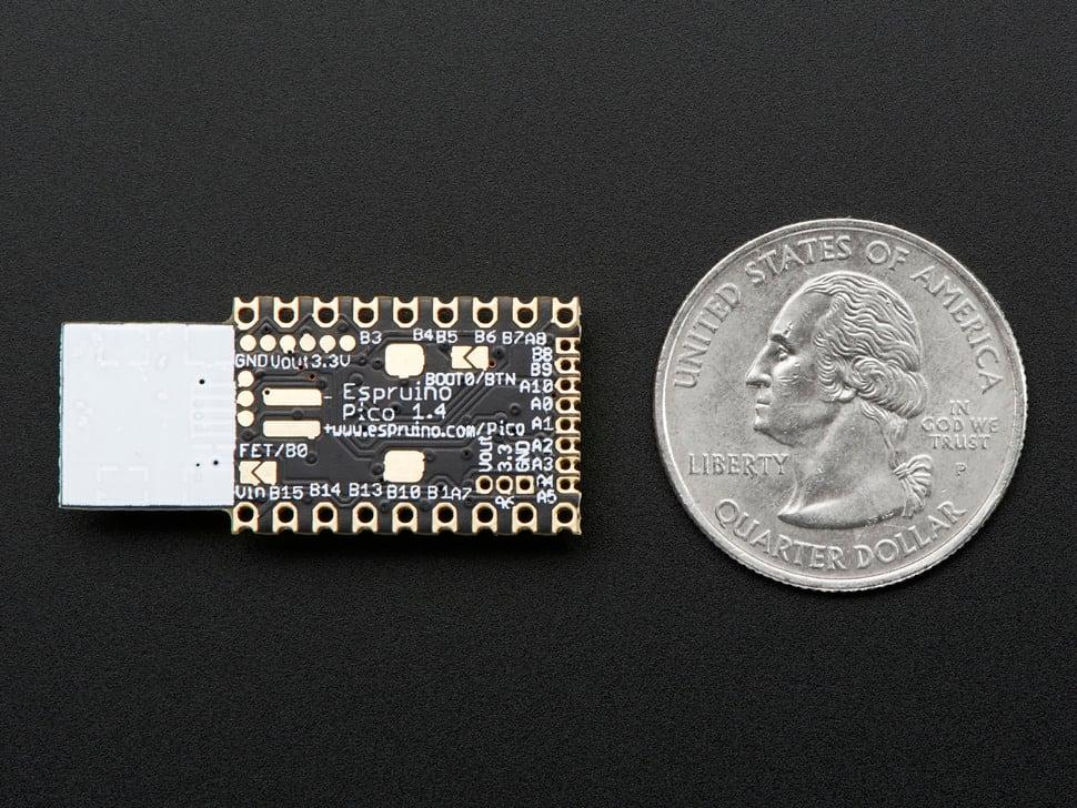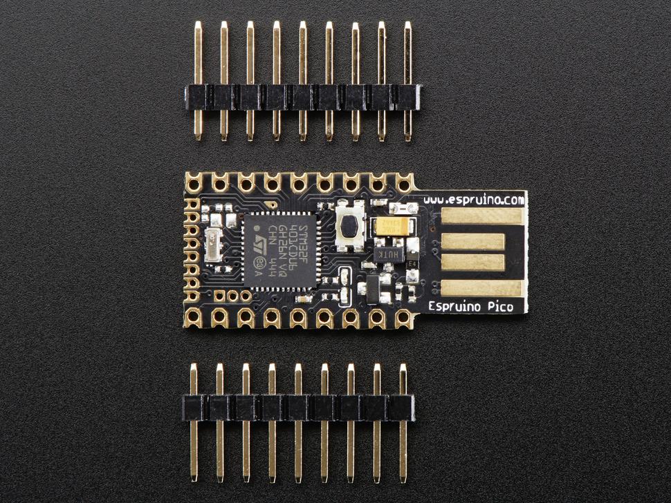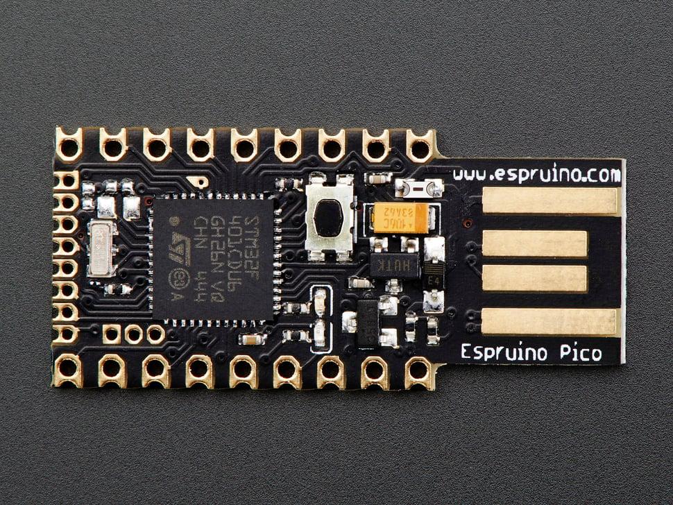 Bestuur elektronica moeiteloos met de Espruino Pico, een compacte USB stick die JavaScript draait. Dit mini- board is voorgeprogrammeerd met Espruino en beschikt over een STM32-microcontroller, waardoor je direct kunt experimenteren.