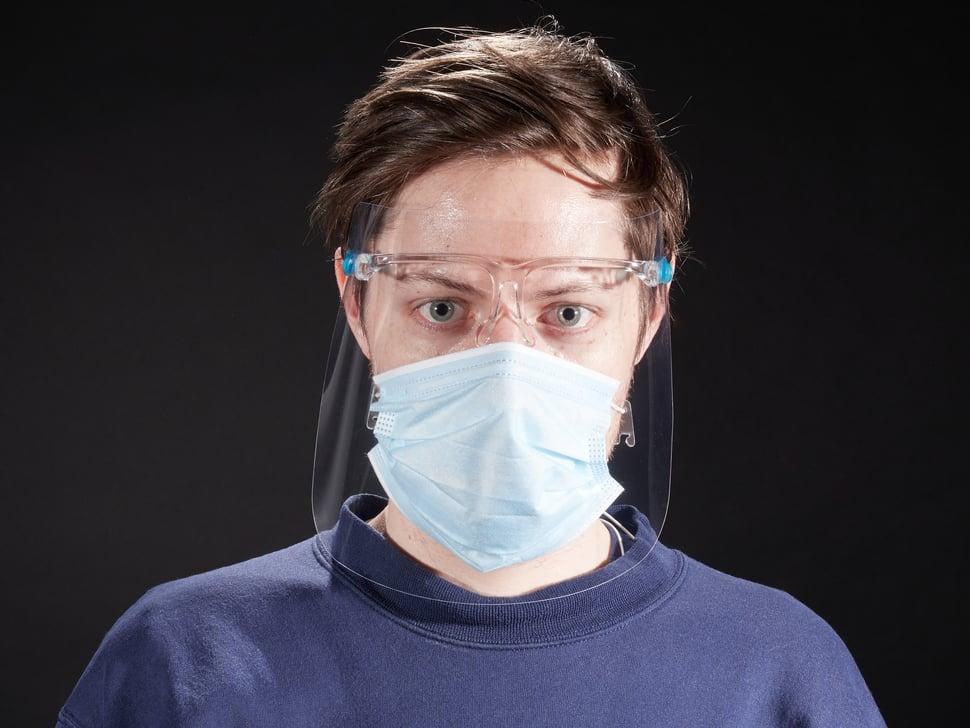 Deze innovatieve PBM-accessoire herdefinieert comfort in beschermende uitrusting. Dit shield , zonder traditionele hoofdbanden, is ontworpen om zacht te zijn voor mensen met een latexallergie of een gevoelige huid.