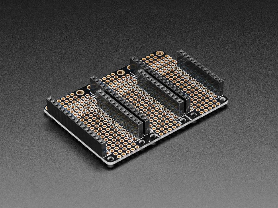 De FeatherWing Tripler is een veelzijdige prototyping-add-on voor alle feather . Hij maakt naadloze verbinding met twee extra feather Wings mogelijk, waardoor stapelen van headers overbodig is. Perfect om uw projectmogelijkheden uit te breiden zonder complexiteit.