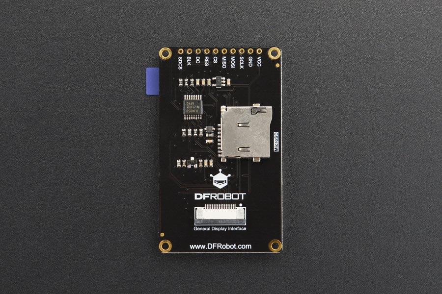 De module ondersteunt inputs van 3,3 V tot 5 V en is compatibel met diverse hoofdcontrollers, waaronder Arduino UNO, Leonardo, ESP32, ESP8266 en FireBeetle M0. De GDI-interface biedt een gestroomlijnd bedradingsproces, vooral in combinatie met de M0-controller. Bovendien breidt de ingebouwde MicroSD-kaartsleuf de display uit door complexere beeldweergave mogelijk te maken. Hiervoor is echter wel een apart aan te schaffen MicroSD-kaart nodig.