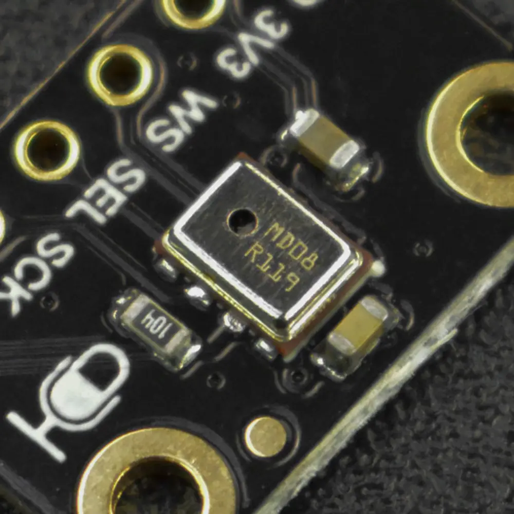 Uitgerust met een opbouw-MEMS I2S-microfoonsensor met een poort aan de bovenkant, zorgt deze module voor eenvoudige integratie door de onderkant vrij te houden van componenten. Dit ontwerp vergroot de veelzijdigheid, waardoor de module probleemloos in diverse toepassingen kan worden geïntegreerd. Bovendien biedt DFRobot een Arduino library specifiek voor dit product, wat het installatieproces vereenvoudigt voor gebruikers die aan ESP32-projecten werken.