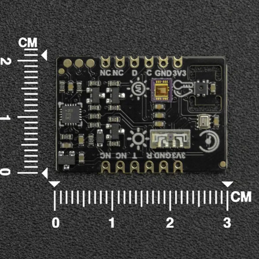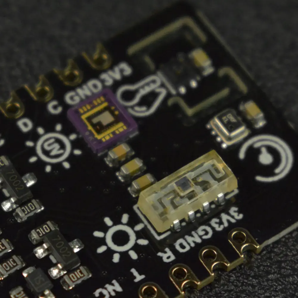 Deze multifunctionele sensor breakout combineert een SHTC3 temperatuur- en vochtigheidssensor, een BMP280 barometrische druksensor, een VEML7700 omgevingslichtsensor en een ML8511 UV-sensor en biedt inzicht in vijf omgevingsparameters. Elke sensor is met precisie ontworpen en maakt gebruik van professionele chips, wat zorgt voor nauwkeurige en betrouwbare gegevens.