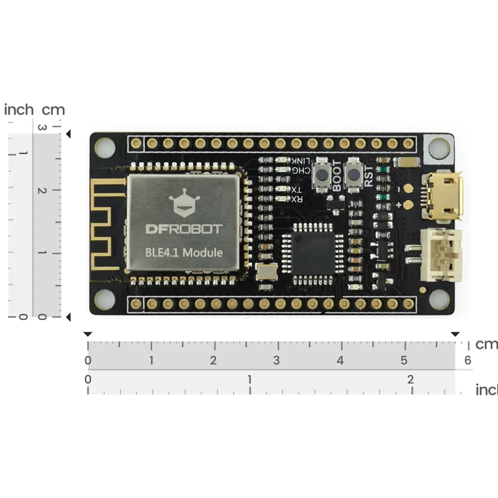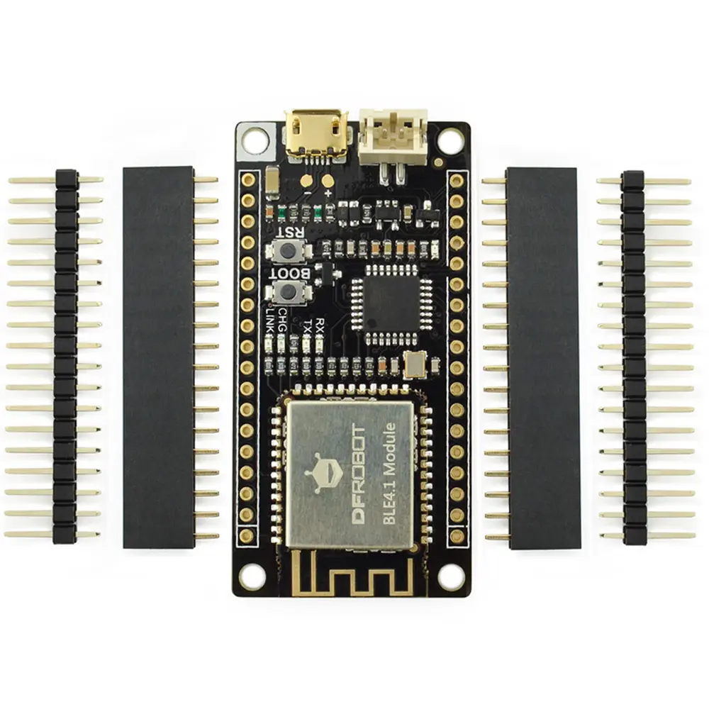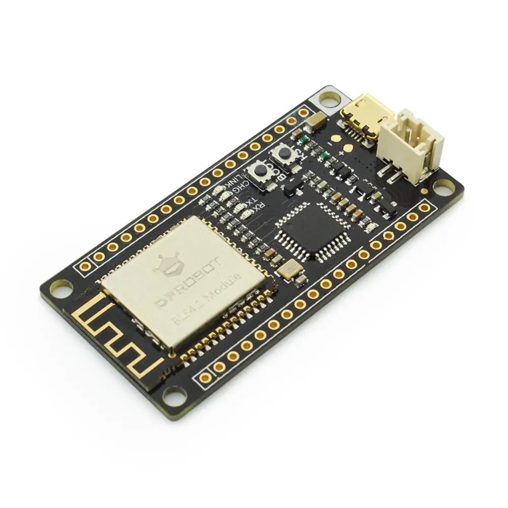 De geavanceerde Bluetooth-chip van de FireBeetle BLE 4.1 ondersteunt zowel centrale als perifere modi, waardoor maximaal vier apparaten tegelijkertijd verbinding kunnen maken. Met verbeterde mogelijkheden zoals KISS-verbindingen voor snelle apparaatkoppeling blinkt het moederbord uit in toepassingen die robuuste draadloze communicatie vereisen. Bovendien is het board compatibel met de Bluno BLE 4.0-serie en biedt het verbeteringen in stabiliteit en gegevensoverdrachtssnelheden tot 4 kB/s, terwijl het stroomverbruik laag blijft.