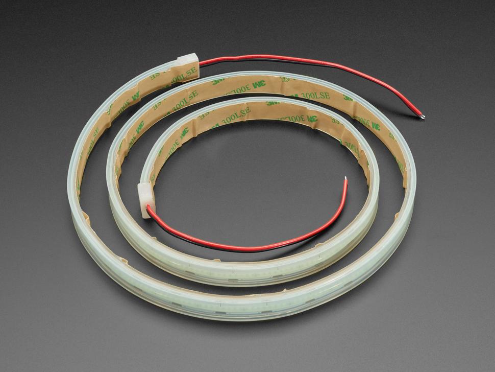 Deze ultraflexibele LED-strips hebben 480 SMT-LED's per meter, die vakkundig naast elkaar zijn gesoldeerd en diffuus met een naadloze siliconenepoxy, wat de charme van neon- of gloeilampbuizen nabootst zonder onhandige accessoires. De continue lichtbron zorgt voor een pure, stabiele gloed.