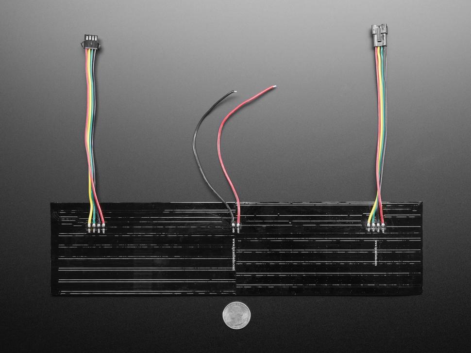De matrix is voorzien van een robuuste, flexibele PCB-achterkant, die zo is ontworpen dat hij soepel over verschillende oppervlakken gebogen kan worden, wat zorgt voor ongeëvenaarde veelzijdigheid. Hij maakt gebruik van DotStar-leds in plaats van NeoPixels en biedt een 2-draads protocol dat zorgt voor een vloeiendere kleurovergang dankzij hoogfrequente PWM.
