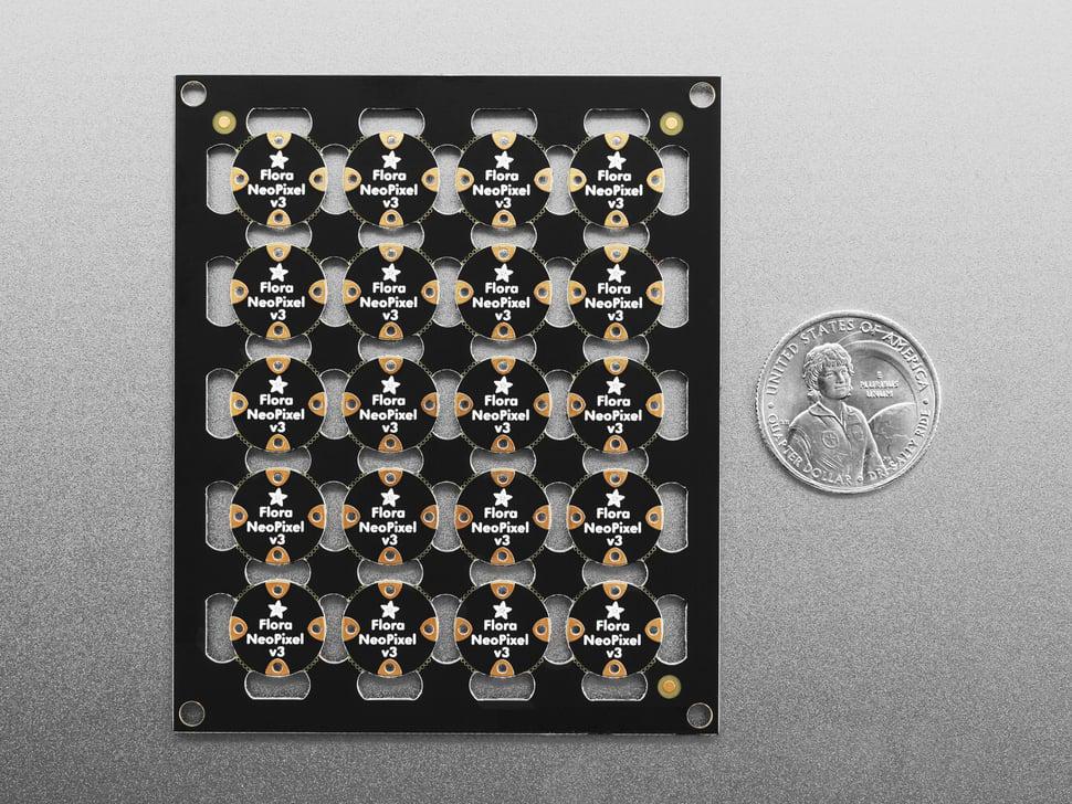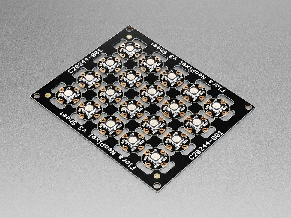 Hier is een vel Flora NeoPixels om je projecten efficiënt en stijlvol te verlichten. Knip naar behoefte uit het vel van 20 pixels en profiteer van kostenbesparingen. Elke slimme pixel is voorzien van een constante driver , wat zorgt voor aanpasbare helderheid en levendige kleuren met minimale stroomschommelingen.