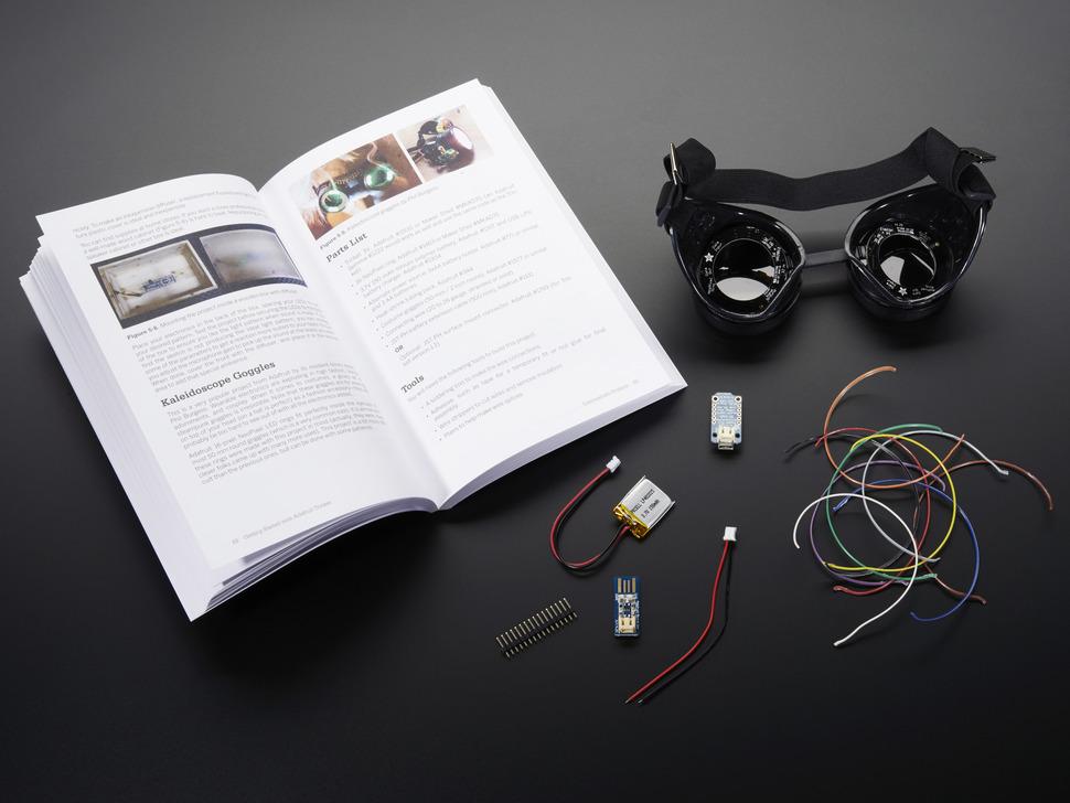 Dit uitgebreide pakket bevat de verhelderende handleiding "Aan de slag met Adafruit trinket ", aangevuld met een uitgebreide reeks essentiële benodigdheden: een 5V Logic Mini Microcontroller- trinket , een betrouwbare 150 mAh lithium-ion-polymeerbatterij, een Micro Lipo USB lader, NeoPixel-ringen met 16 levendige RGB-leds en een strakke Costume Goggles. Als aanvulling hierop zijn een 15 cm lange regenbooglintkabel en een JST-PH 2-pins SMT haakse connector inbegrepen.