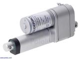 Deze 12 V lichte (LD) lineaire actuator met een tandwielreductie van 20: 1 kan lasten tot 50 kgf [110 lbs of 500 N] heffen en is bestand tegen statische belastingen tot 250 kgf [550 lbs of 2500 N]. Het heeft een maximale snelheid van 14,6 mm / s [0,57 ″ / s] zonder belasting en 12,3 mm / s [0,48 ″ / s] bij maximale belasting. Eindschakelaars aan elk uiteinde maken de actuator gemakkelijk te besturen over zijn volledige bewegingsbereik, en de wormaandrijving zorgt ervoor dat de as zijn positie behoudt, zelfs als hij geen stroom heeft. Deze versie heeft een slag van 2 inch en een feedbackpotentiometer waarmee je kunt bepalen waar de actuator zich in zijn slag bevindt.