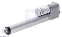 Deze 12 V lichte (LD) lineaire actuator met een 5: 1 tandwielreductie kan lasten tot 15 kgf [34 lbs of 150 N] heffen en is bestand tegen statische belastingen tot 250 kgf [550 lbs of 2500 N]. Het heeft een maximumsnelheid van 43,9 mm / s [1,73 ″ / s] zonder belasting en 36,5 mm / s [1,44 ″ / s] bij maximale belasting. Eindschakelaars aan elk uiteinde maken de actuator gemakkelijk te bedienen over zijn volledige bewegingsbereik. De as behoudt zijn positie wanneer hij niet wordt aangedreven. Deze versie heeft een 8-inch slag (7,8 ″ bruikbaar) en een feedbackpotentiometer waarmee u kunt bepalen waar de actuator zich in zijn slag bevindt.