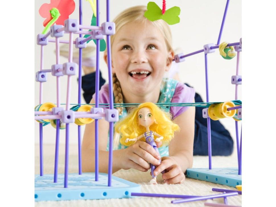 De bouwset bevat een gereedschapsriem en een sleutel, waarmee bouwers een eigen zipline van 4 meter kunnen maken. Kinderen kunnen de basisprincipes van techniek leren met vier wieluiteinden, ellebooggewrichten en T-gewrichten, naast mini-assen, afstandhouders en ringen voor een soepele bouwervaring.